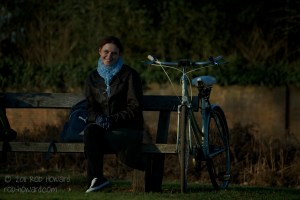 The wife sitting with her bike (and actually smiling at the camera for once)