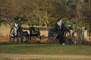 My wife, with our bikes (already looking like we’d been off-roading for days)