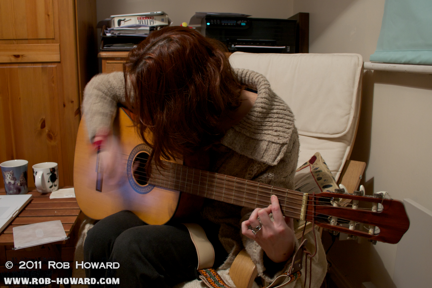 Playing about with a longer shutter speed, it looks like Holly is rockin’ out. In a cardigan.