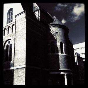 A shot of the Chapel at King’s College London. I especially love the was the filter has brought out not only the sky, but a sense of foreboding about the building.