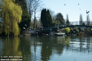 There were quite a few birds around. Here a bunch fly past the bridge to Eel Pie Island.