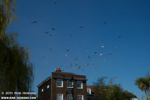 They spent some time looping past the house they were originally nestling on.