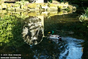 A duck disturbs the unbroken surface of the water.