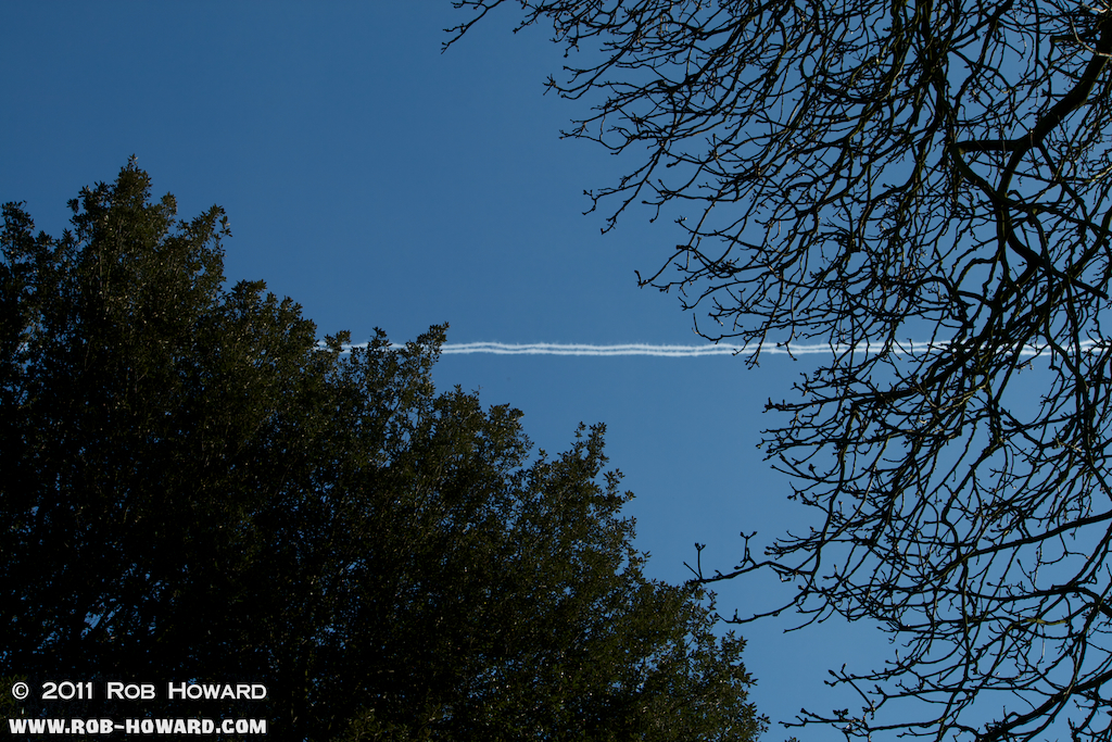 An unusually whispy trail in the sky.