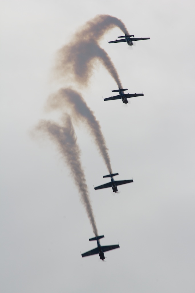 Knowing that fact helps you understand why some of the manoeuvres seem familiar. Some of the moves are straight out of the Red Arrows playbook.