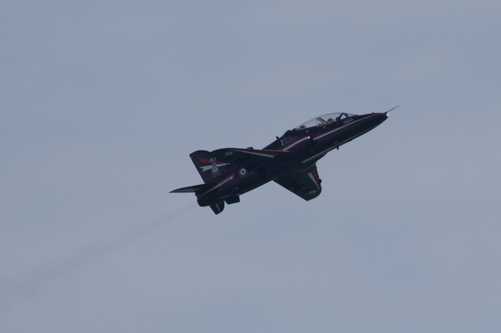Look past the dark blue livery and underneath is the same jet flown by the Red Arrows. The Hawk is another RAF training vehicle, the last step for trainee pilots before stepping into frontline aircraft.