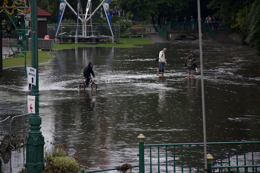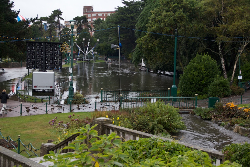 Bournemouth’s Lower Gardens – the very spot where the majority of the ground events were to have taken place – was completed flooded out.
