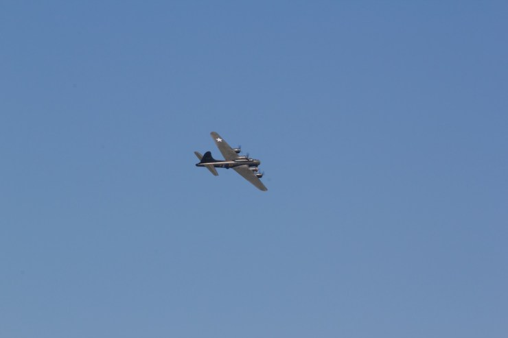 The position we took for the flying displays – atop the East Cliff – meant that when the planes flew in low we were almost level with them. And from our angle, the Lancaster has a lot in common with the B-17.