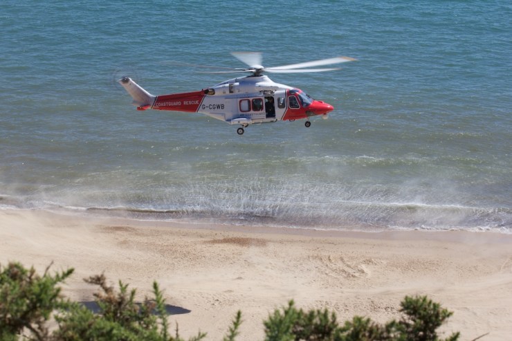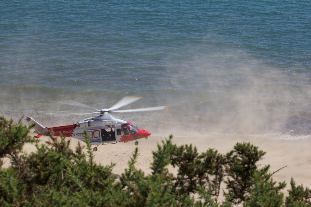 On the subject of helicopters, we did have an unscheduled drop-in from a coastguard helicopter that landed on the beach, kicking sand all the way up to us at the top of the East Cliff.