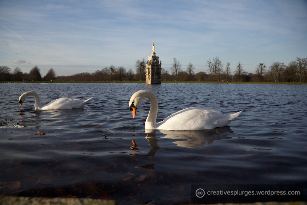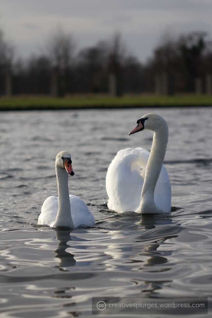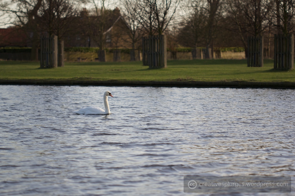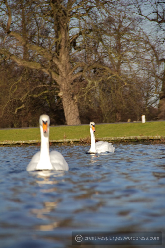 At this point I noticed the swans in the water, floating gracefully.