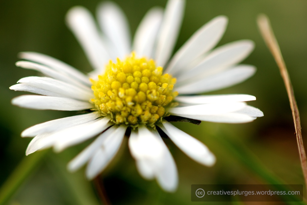 I really like how this lens behaves at longer distances. Part of the reason I bought it was positive reviews of its performance as a more general lens, and it didn’t disappoint. However, I was keen to try it at the extremes of its macro capability. I found a daisy on the ground, and got as close as I could.