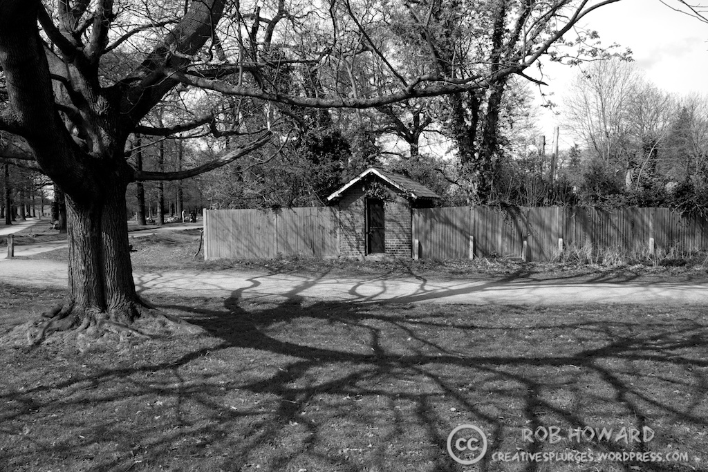 I’ve cycled past this little hut many times. I’m not sure why it was this time I turned around and saw this shot. I am certain that, if it weren’t for my latest phase of black and white photography, and also some inspiration from the work of Lee Thornberry, it wouldn’t have occurred to me to even take the photo.