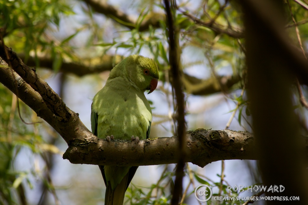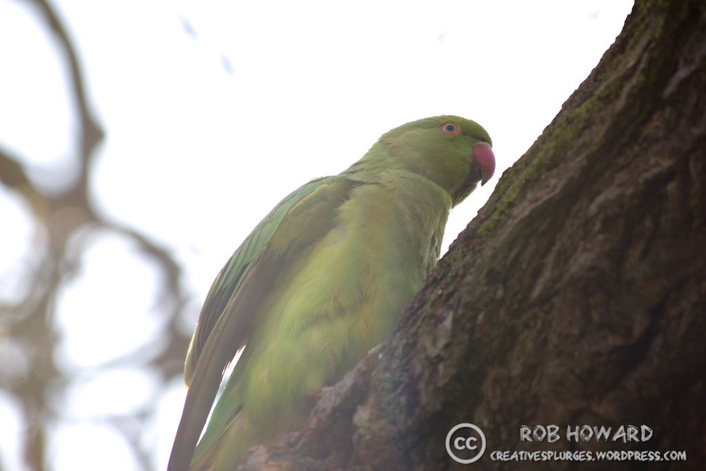 Parakeets are a common feature in my parents’ garden in NW London, what a noise they make too! The un-shy photo is excellent, it’s the sort of photo that almost demands a speech bubble.