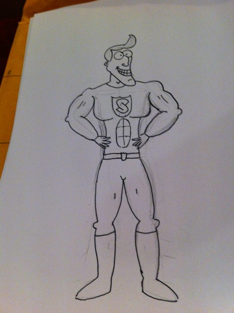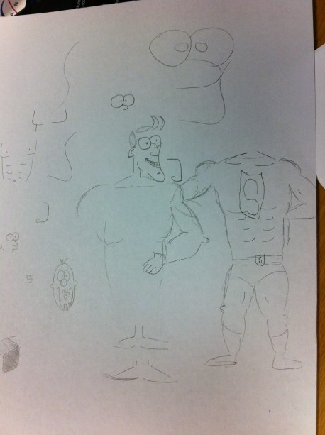 I started by doodling, trying to figure out how to draw a bemuscled saviour – and also trying to figure out what out hero would look like.