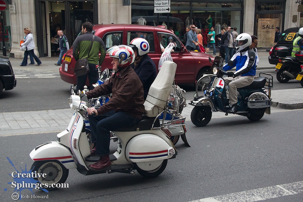 We were making our way along Regent Street when we heard a loud noise, and were passed by a massive convoy of scooters. Quick as a flash (alright, as a photographer I’m pretty sure I can’t use that phrase because I’m more technically aware of how quick that actually is) I whipped out my camera and managed to squeeze off a few shots as they drove past.