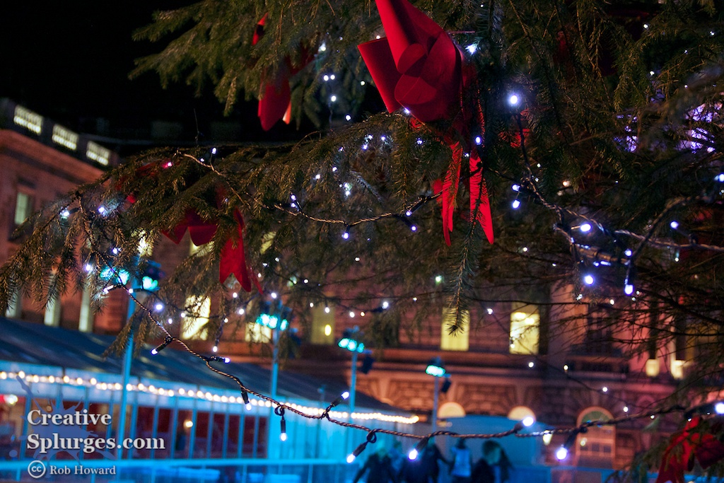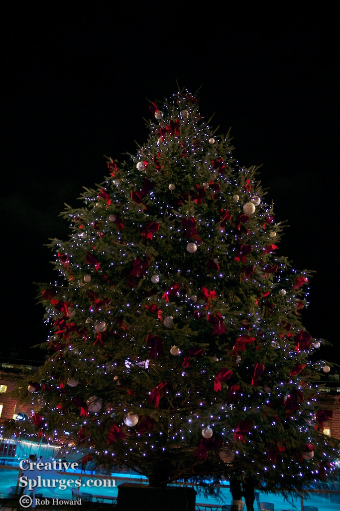 After we stepped onto the viewing area to shoot the rink itself, we were waylayed by a security guard. We apparently weren’t allowed to take photos on the viewing area, nor were we allowed to take identifiable pictures of people on the ice rink – which seemed fair enough. I showed him the blurry shots of the Christmas tree and the wide angles of the rink I had thus far taken, and he was content to leave us alone. The ice rink isn’t on public land, so we had to follow their rules.