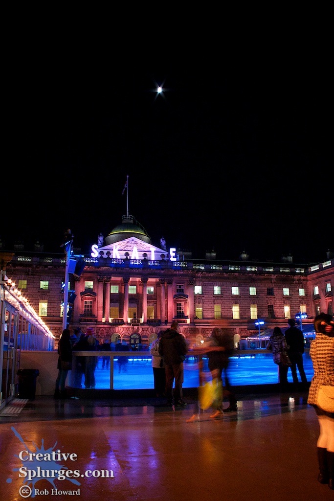 I’m continuing to work through my backlog of images in the order that most appeals to me. Today we’re heading back to mid November and a trip to Somerset House with Catherine. Being November, the ice rink that set up there each winter was in full swing. Also, with it being November, it got dark quickly.