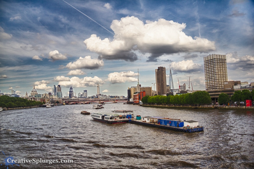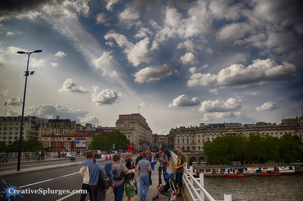 Far back in the mists of ancient time, a whole week before the start of the 2012 London Olympics, my wife and I took a trip into London to see an all-night Dark Knight trilogy screening. We had a bit of time to kill before the midnight screening, so I ended up taking quite a few photographs. I’ve already posted most of them, in London at Night (Part IV) and In the Skatepark at Midnight. Earlier in the day, however, we wandered across Waterloo Bridge. It was a cloudy day, so I decided to experiment with HDR images to bring out the clouds and the sky.