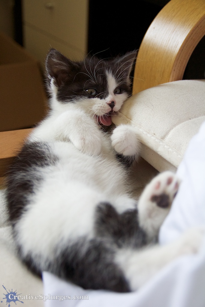 I’ve recently discovered that these kittens will actually stop doing cute things when a camera is pointed at them. They don’t seem to acknowledge the camera, but suddenly they’re not so jumpy or energetic!