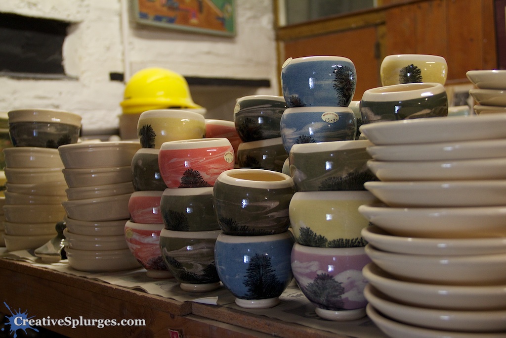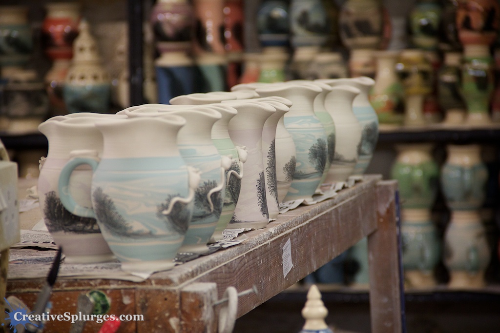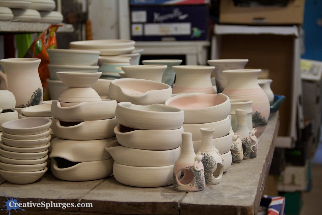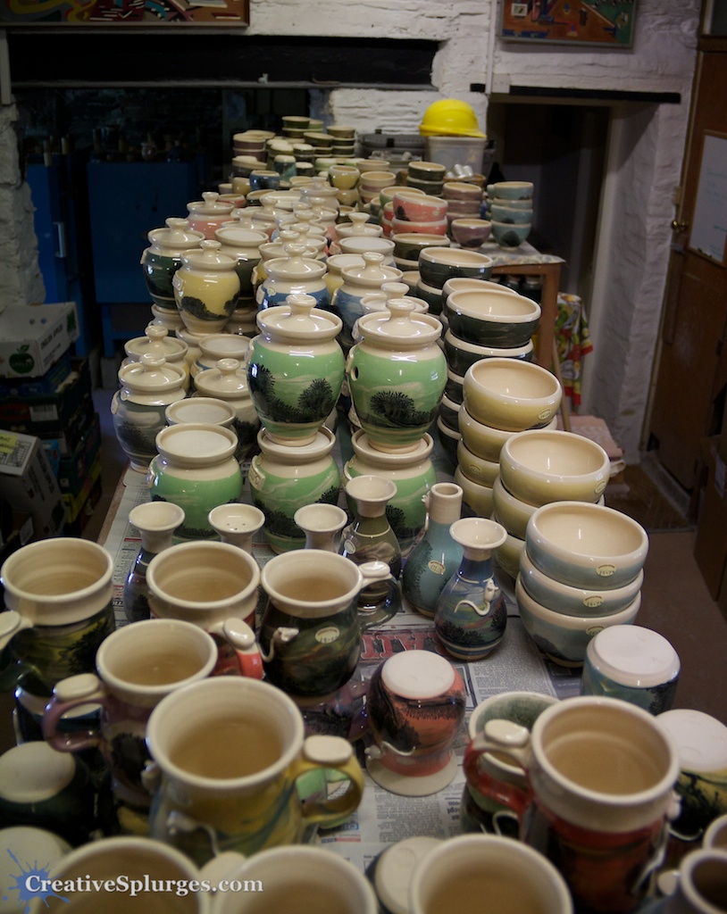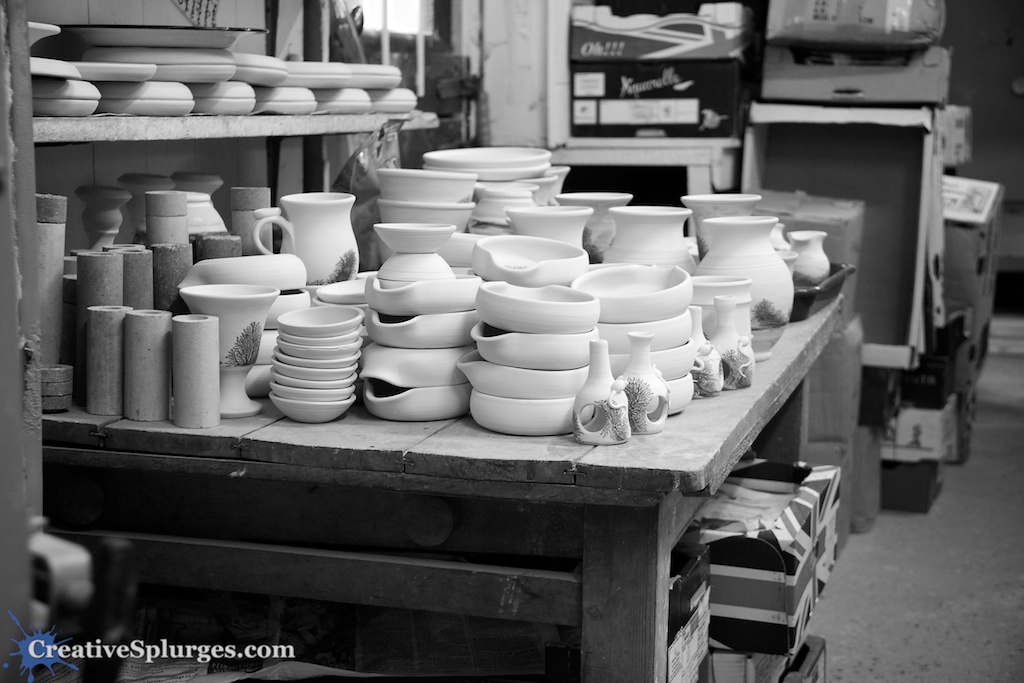 In the other direction, facing deeper into the workshop, was an assortment of pottery in various stages of completion.