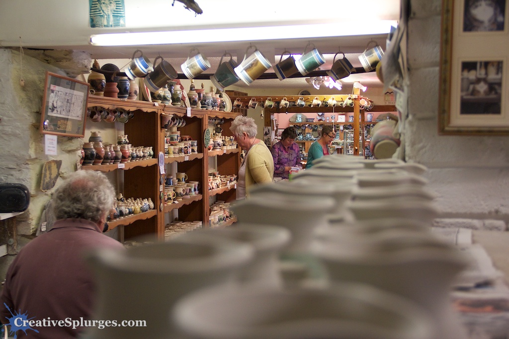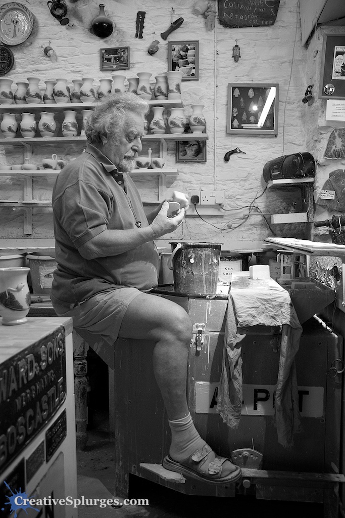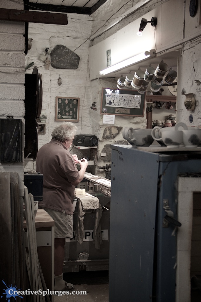 Boscastle Pottery is a family run business. Roger Irving Little, his wife Nannette and son Tim make the pottery and run the shop. Tim wasn’t there when I visited, but Roger was working away at the wheel on some small fridge magnets.