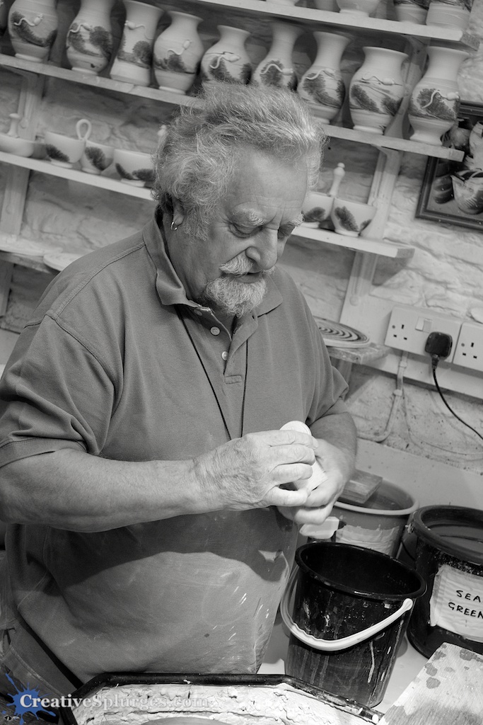 As I closed up my little visit, I started talking to Roger, shooting as I talked. He’s a truly fascinating man; he has an interest in archaeology, but not having the grades to go and learn how to do it for a living he’s ended up doing the next best thing: making pots for future generations to dig up. This is why he marks every piece of pottery he makes with his name, location, and the year, so that when some descendant of Sir Tony Robinson digs up a bit of Boscastle Pottery centuries from now, they’ll know where it came from. Which is a brilliant sentiment if you ask me.
