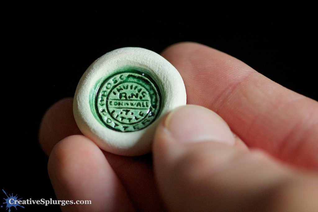 As we finished speaking, I mentioned that I loved this approach of marking all of his pottery, and remarked how I loved one of the pieces on the wall which was basically an example of that year’s signature. He responded by giving me a tiny piece of pottery containing his potter’s stamp.
