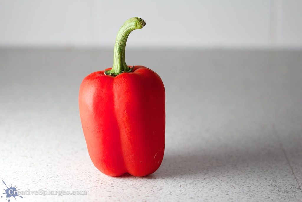As you can see, it blurred the background nicely. However it closed up the depth of field a bit too much, meaning the side of the pepper facing me and the green stalk couldn’t both be in focus at the same time. Unfortunately, this wasn’t something I thought about at the time nor noticed on the screen on my camera. I always seem to forget that the screen on the back of my camera is so small that everything usually looks in focus.