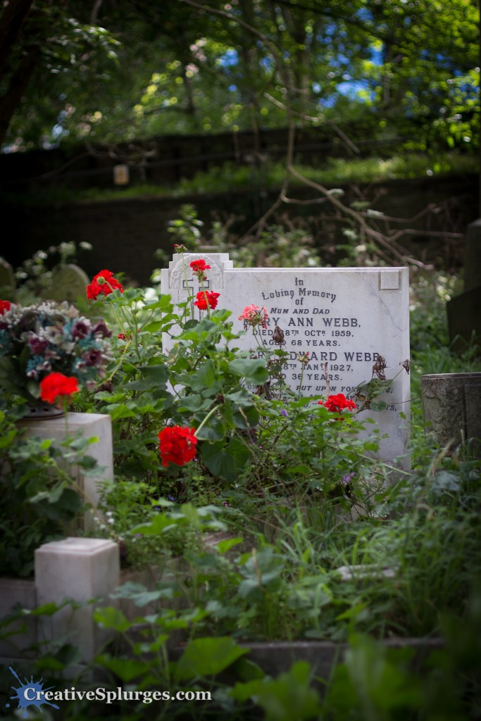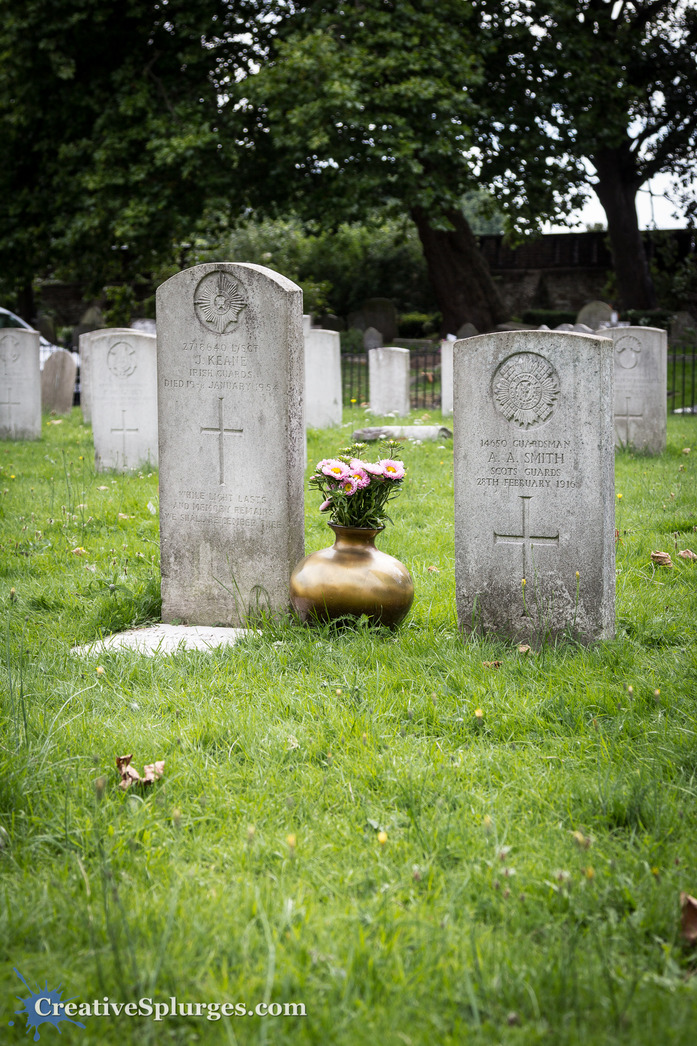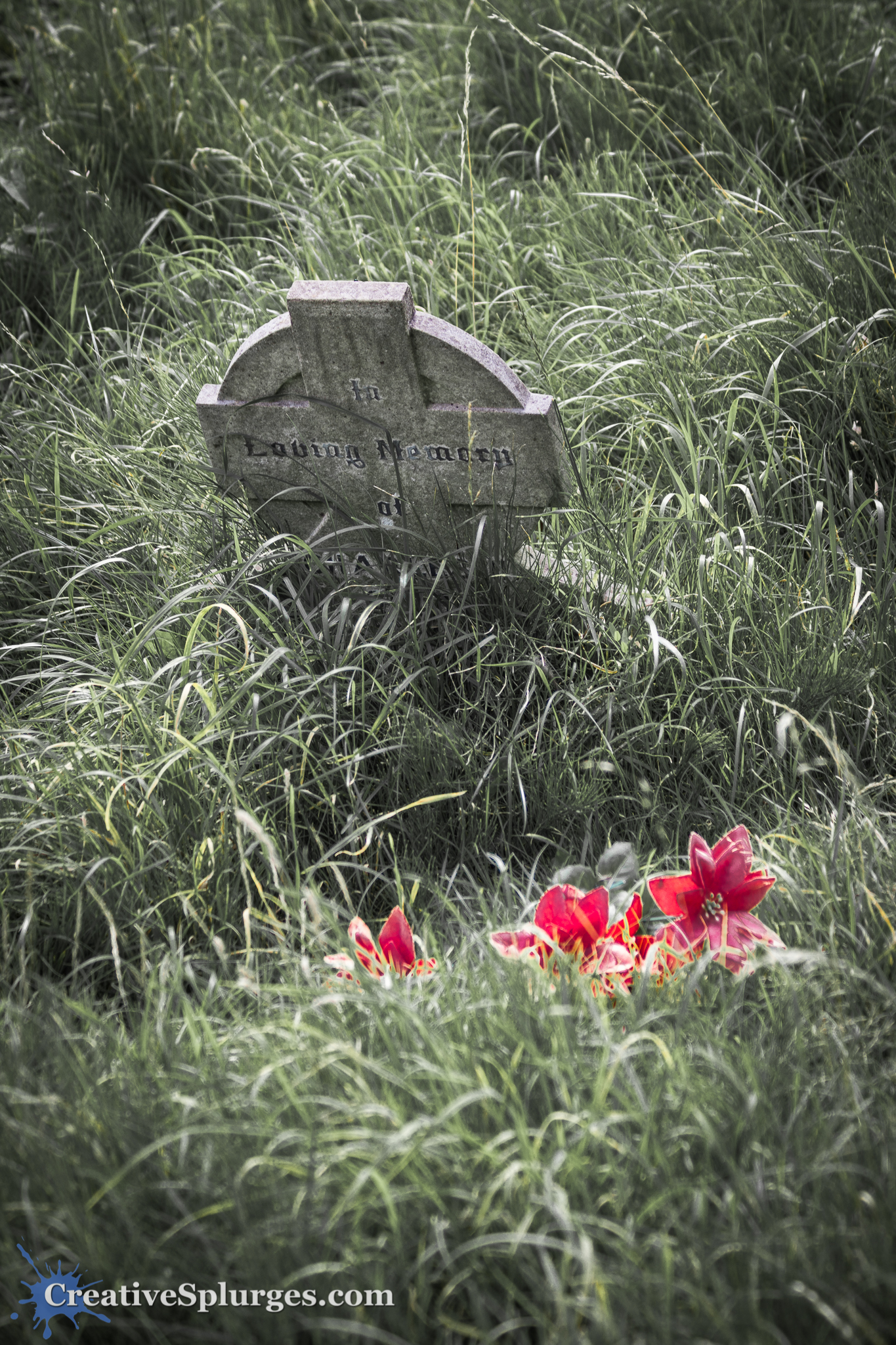 For the spots where fresh flowers had been left, I boosted the saturation a bit to bring them out.