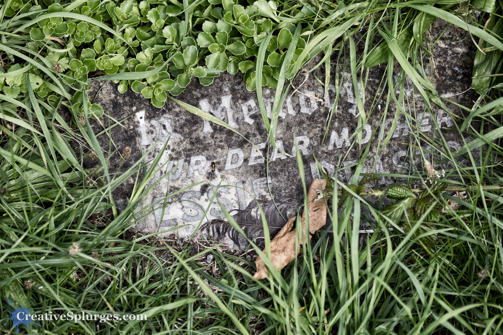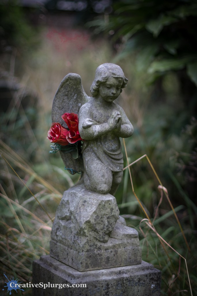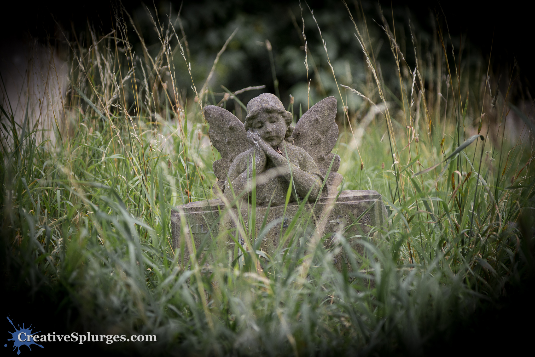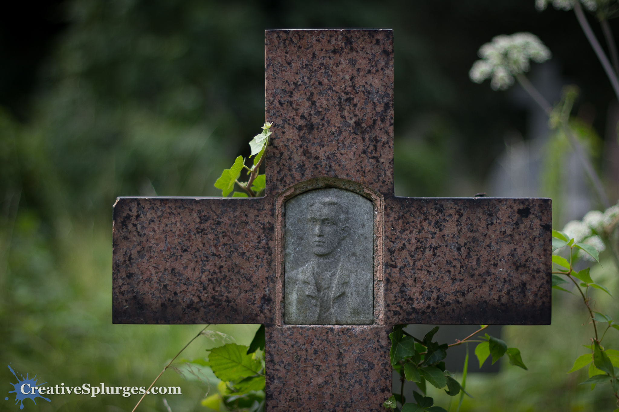 One of my favourite things to photograph were all the shapes and details in the gravestones and markers. There was quite a variety, from small creepy angels, do sculptures of books, to simple but beautiful wooden crosses.