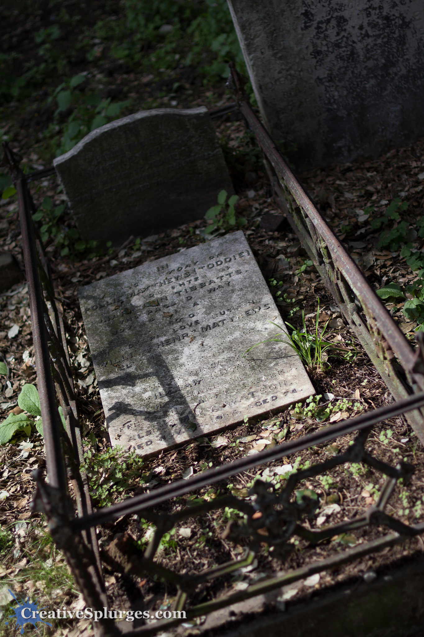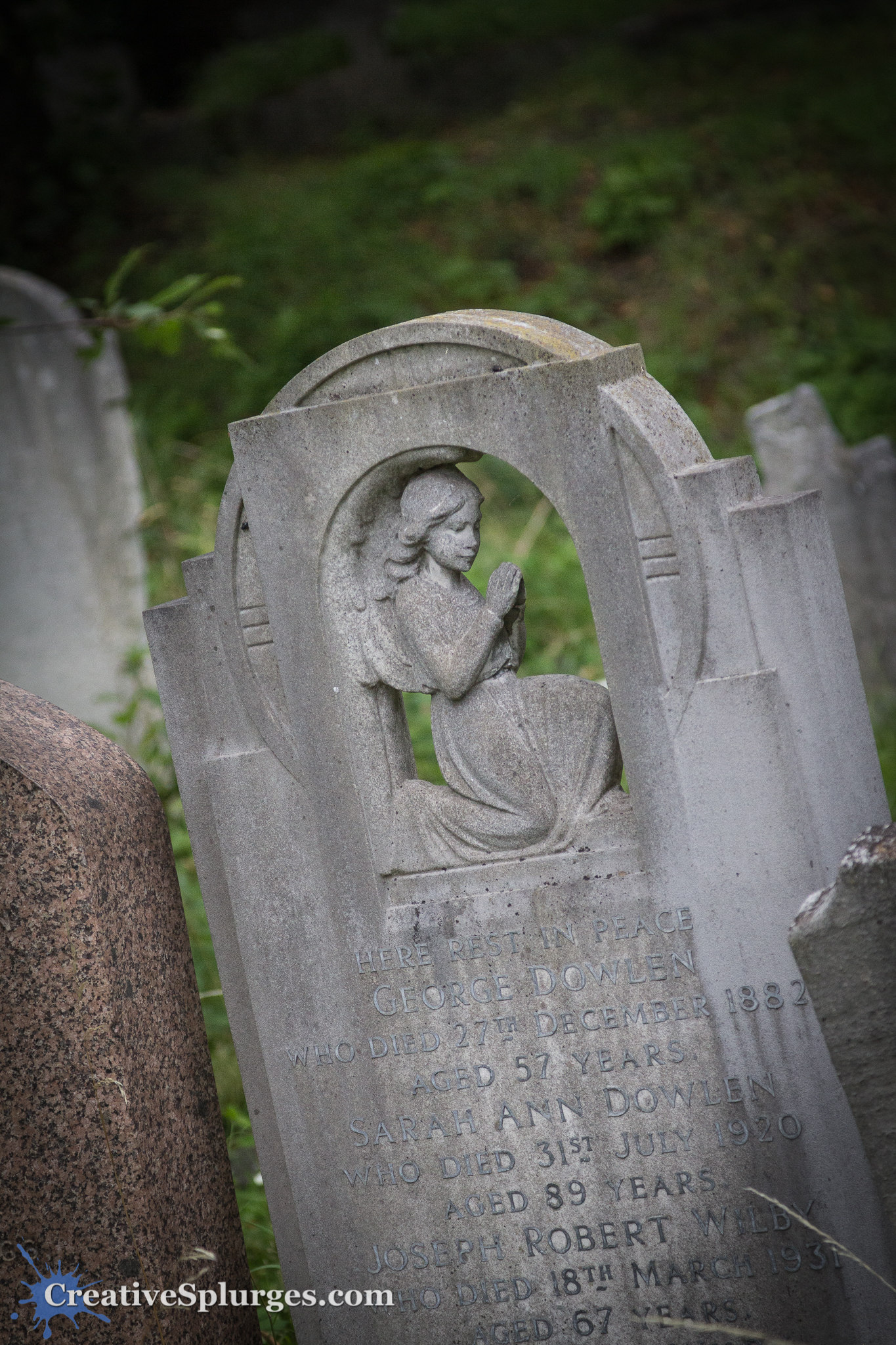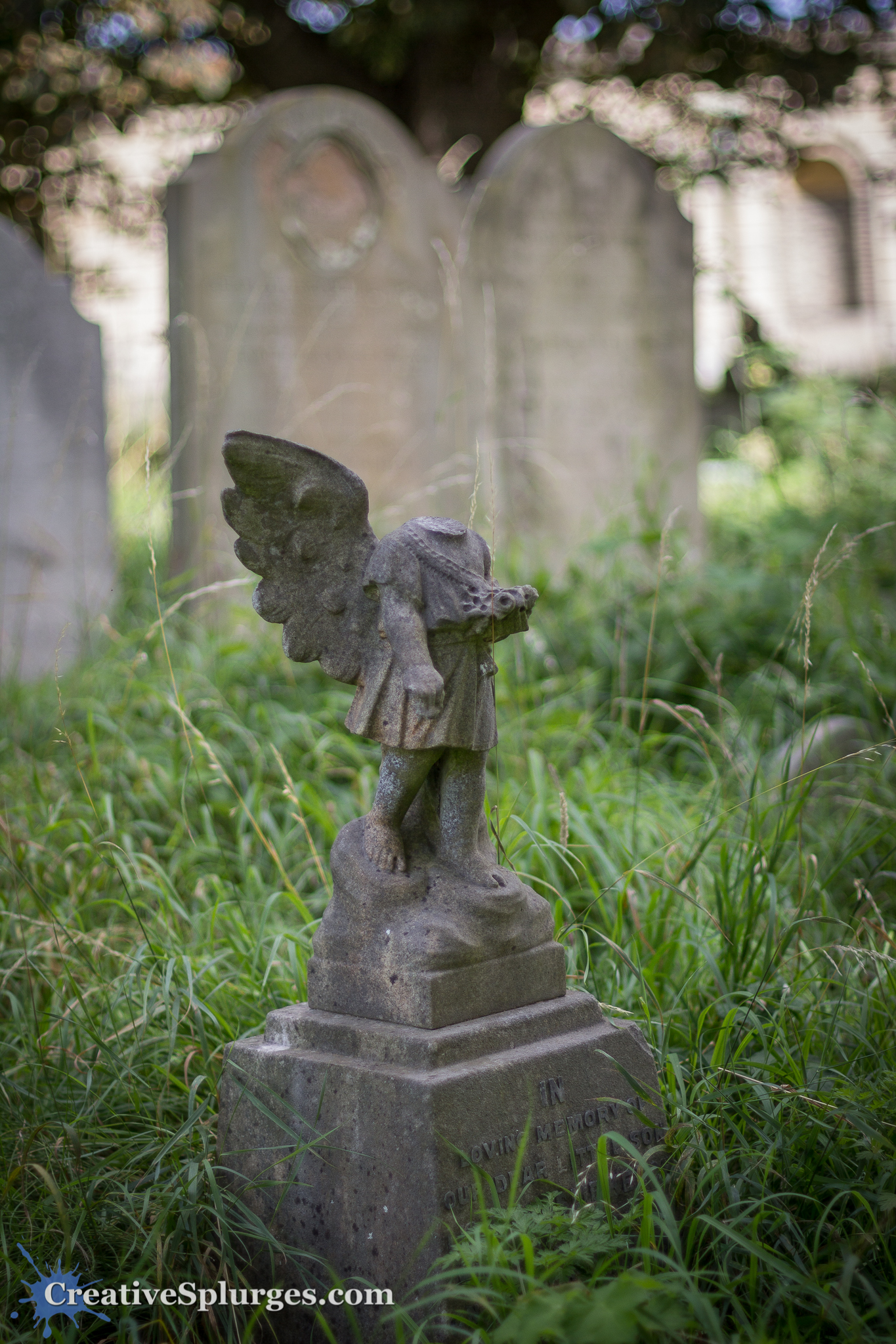 One of my favourite things to photograph were all the shapes and details in the gravestones and markers. There was quite a variety, from small creepy angels, do sculptures of books, to simple but beautiful wooden crosses.