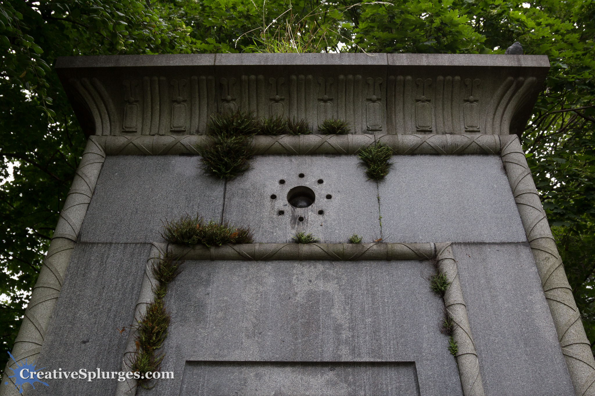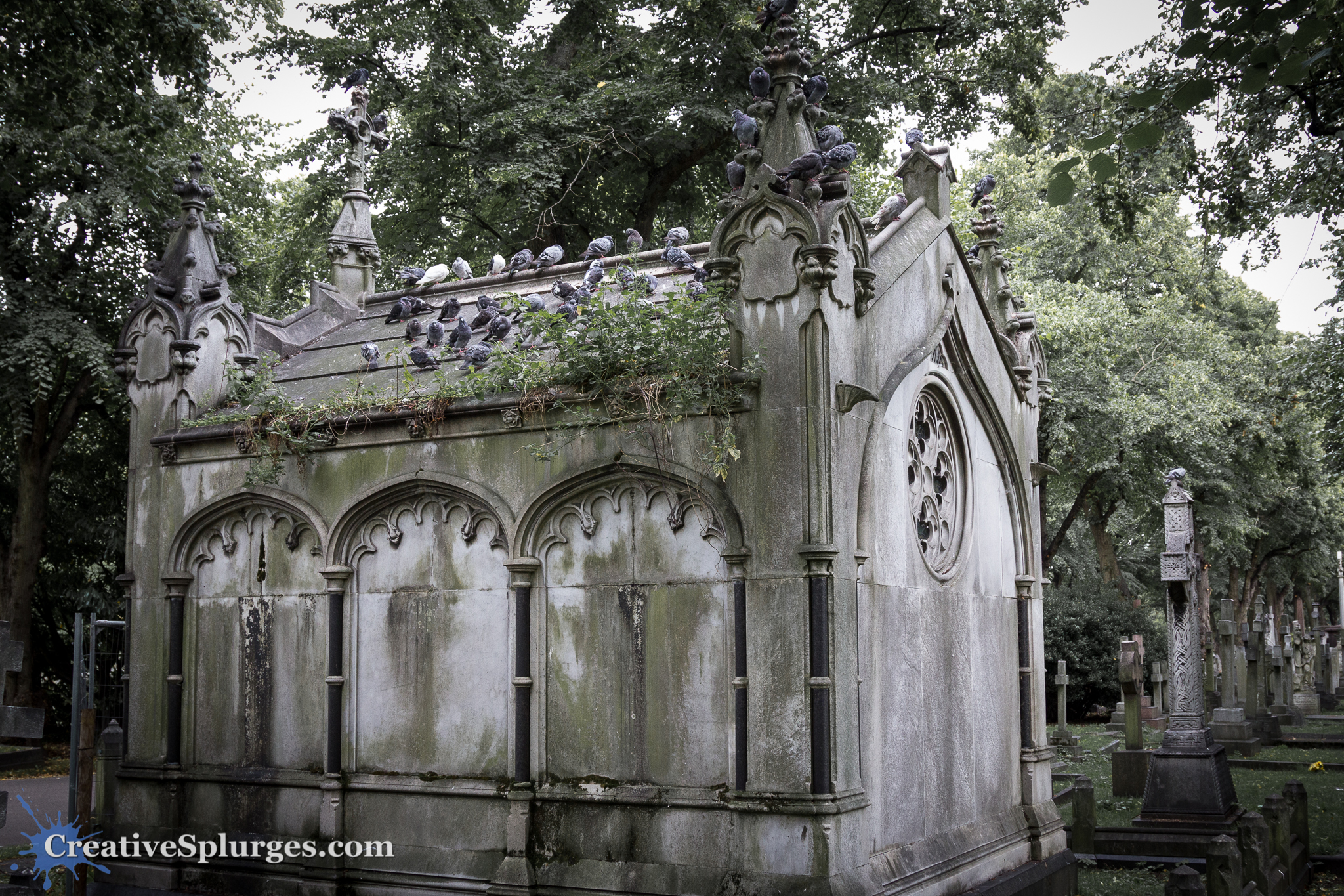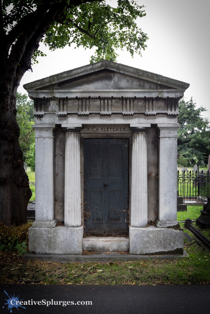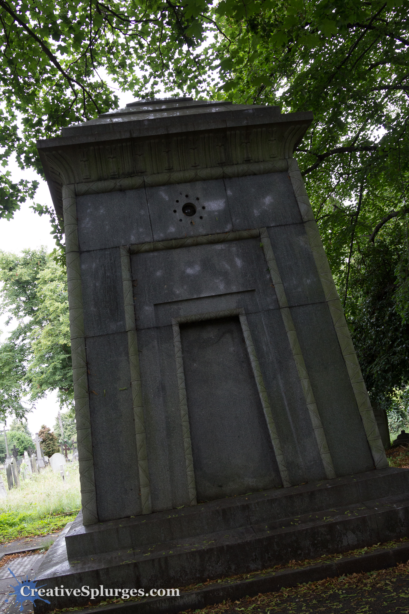 This being an old cemetery in London, there’s plenty of rich corpses lying around, so every so often you come across a large tomb. This was the biggest one we found, big and monolithic and looking like something out of a 1970s Doctor Who episode.