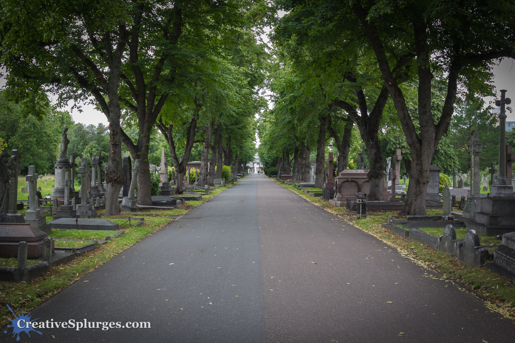 The entrances to the cemetery being at its ends means you are also quickly greeted with long, perspective-inducing pathways.