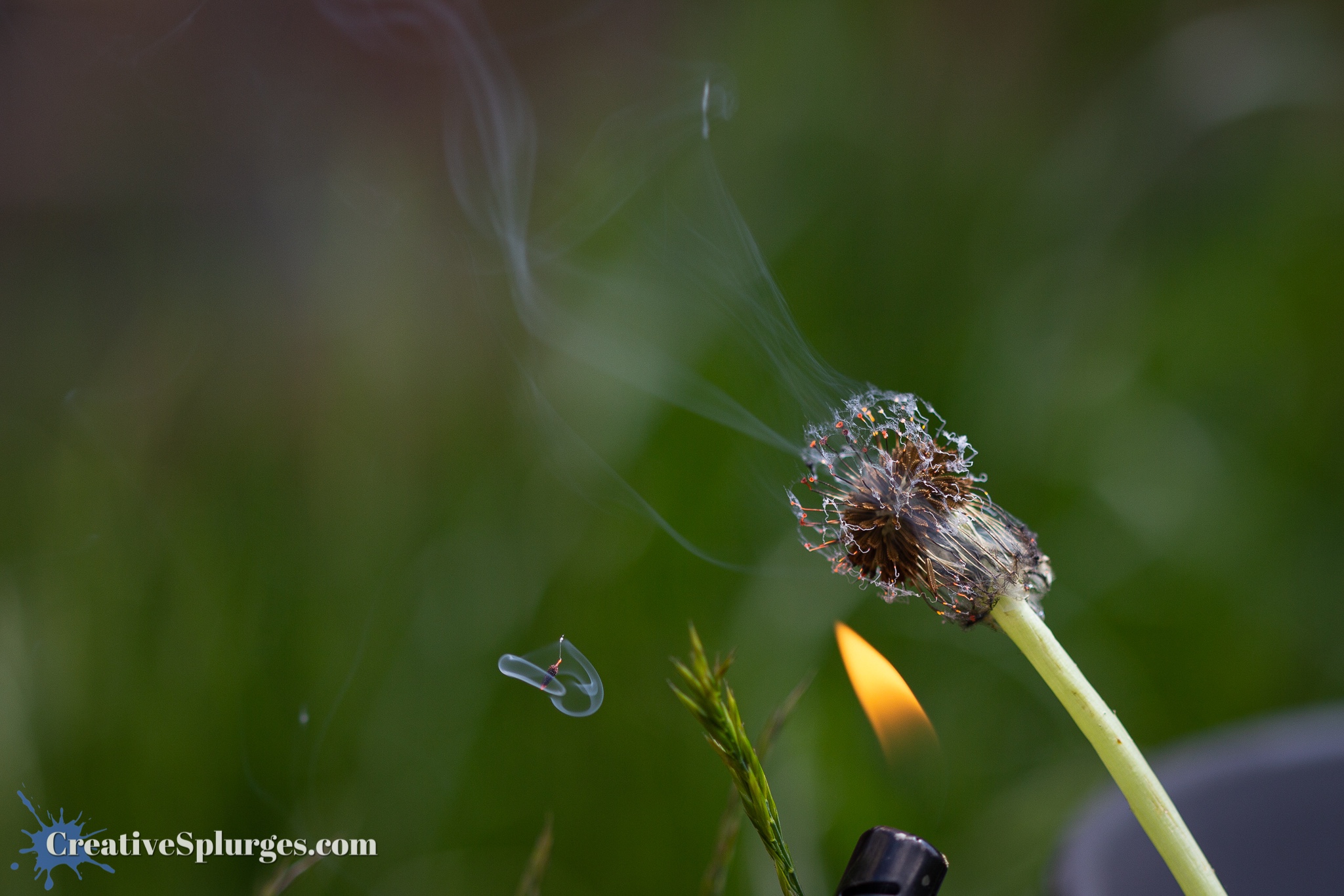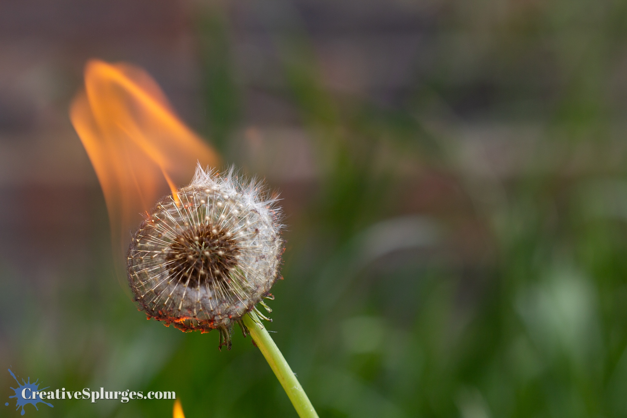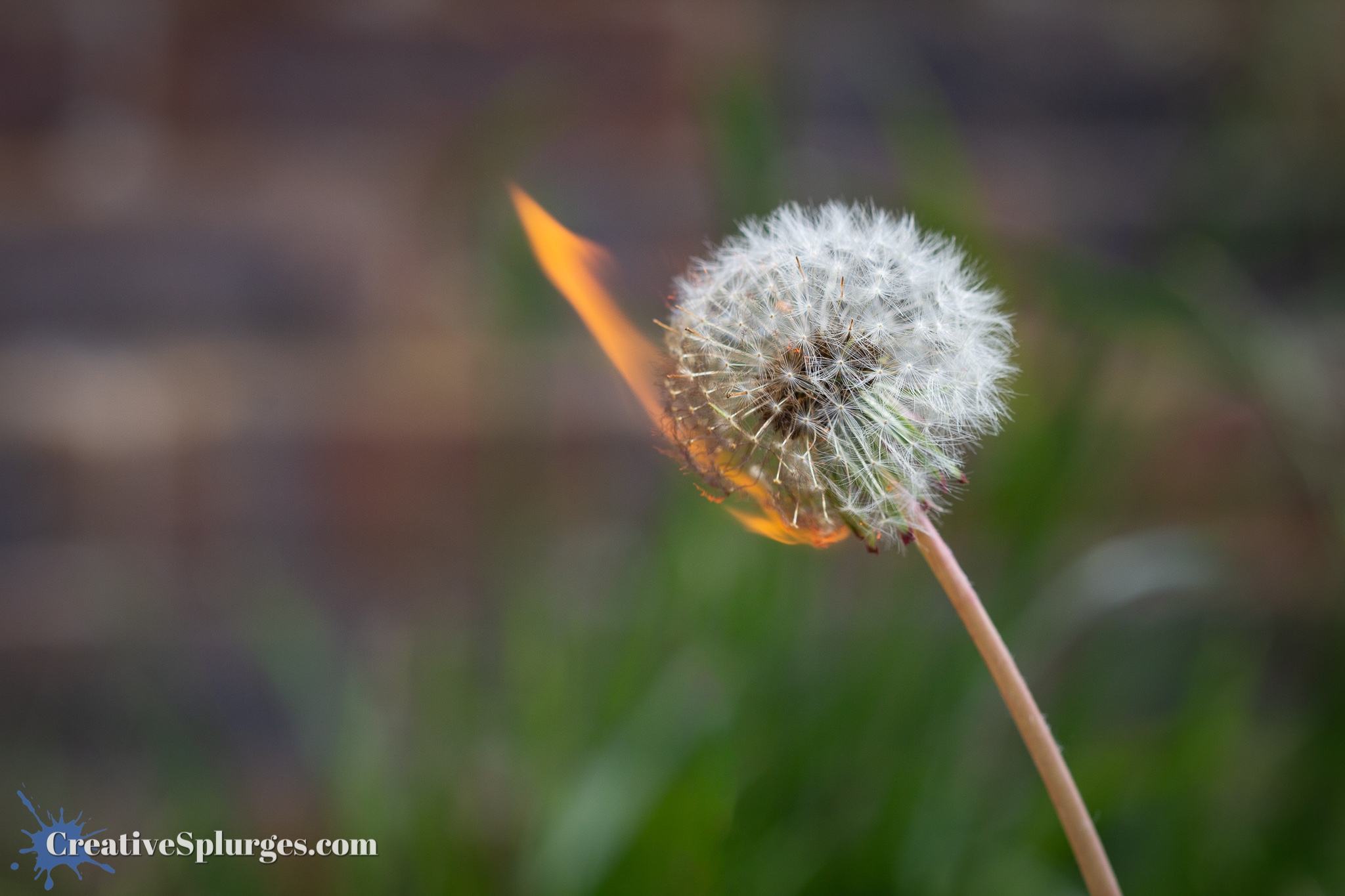 Annoyingly I think I knocked the flame setting because it was a lot shorter than the previous shots, meaning I had to get the lighter much closer to the dandelion to light it up – which made me decide against removing the lighter in Photoshop.