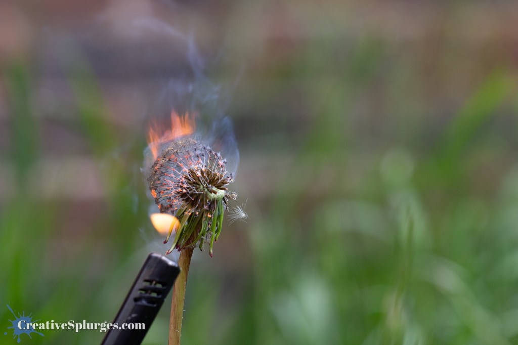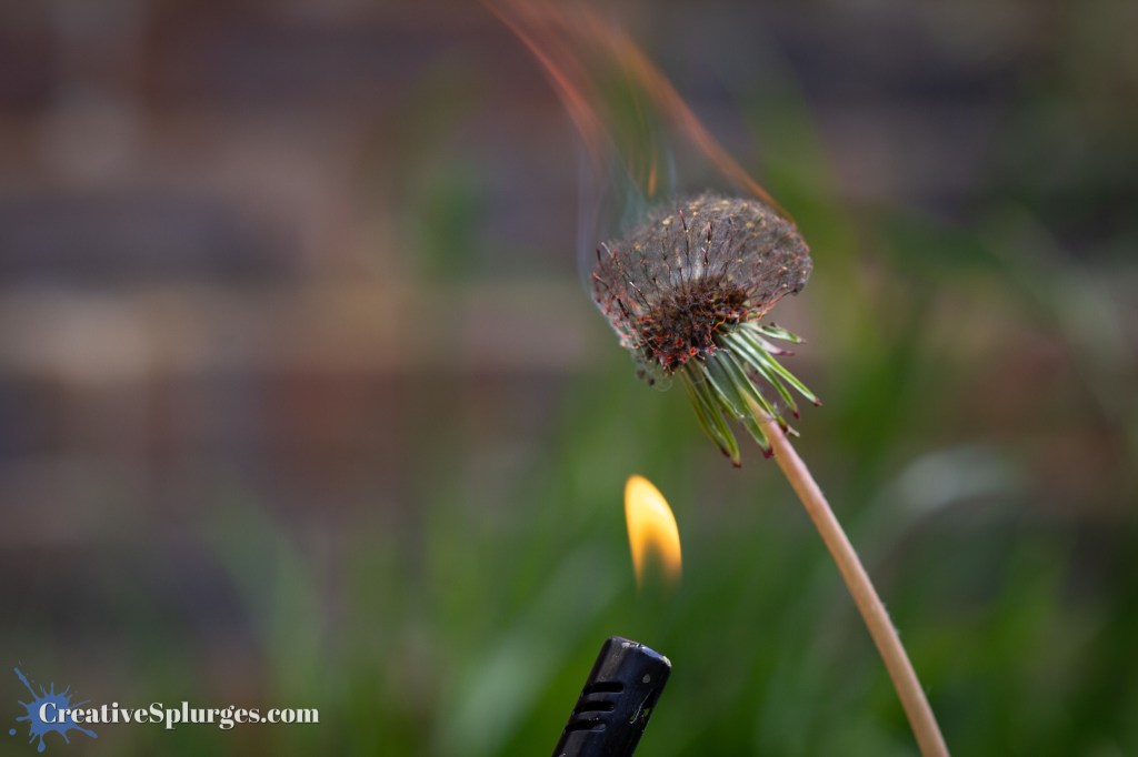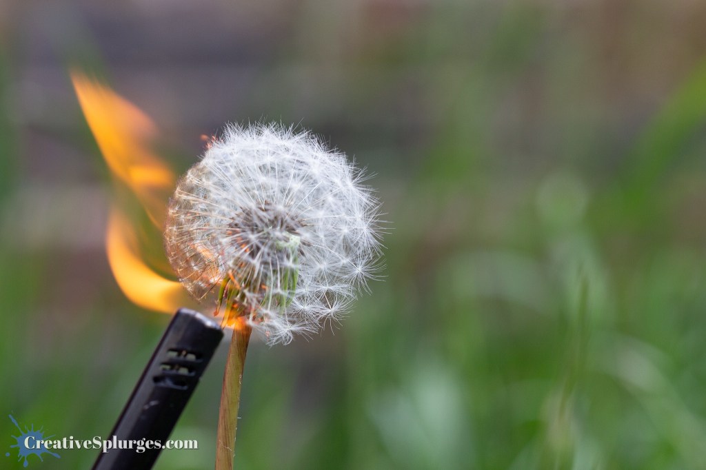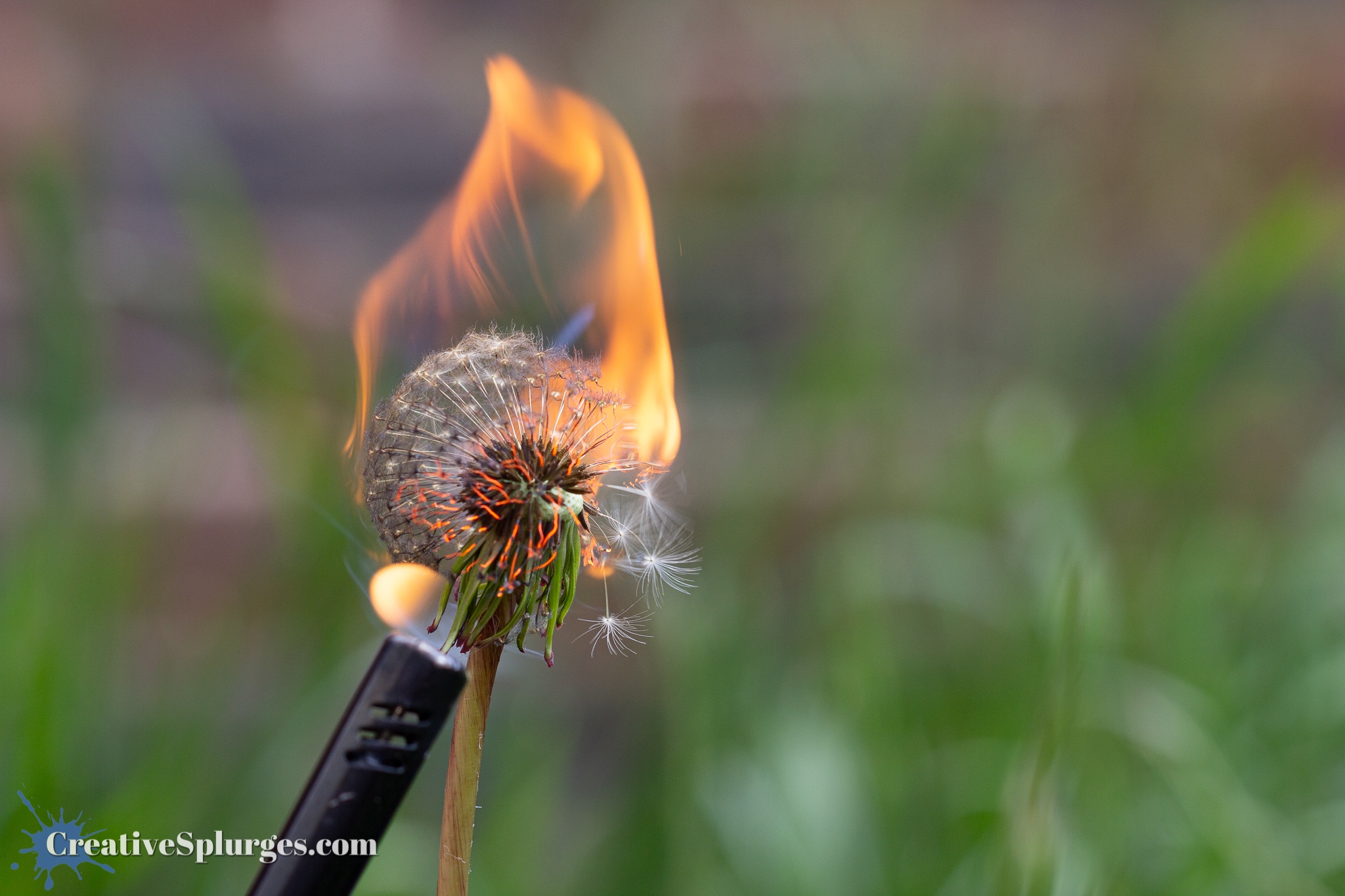 Annoyingly I think I knocked the flame setting because it was a lot shorter than the previous shots, meaning I had to get the lighter much closer to the dandelion to light it up – which made me decide against removing the lighter in Photoshop.