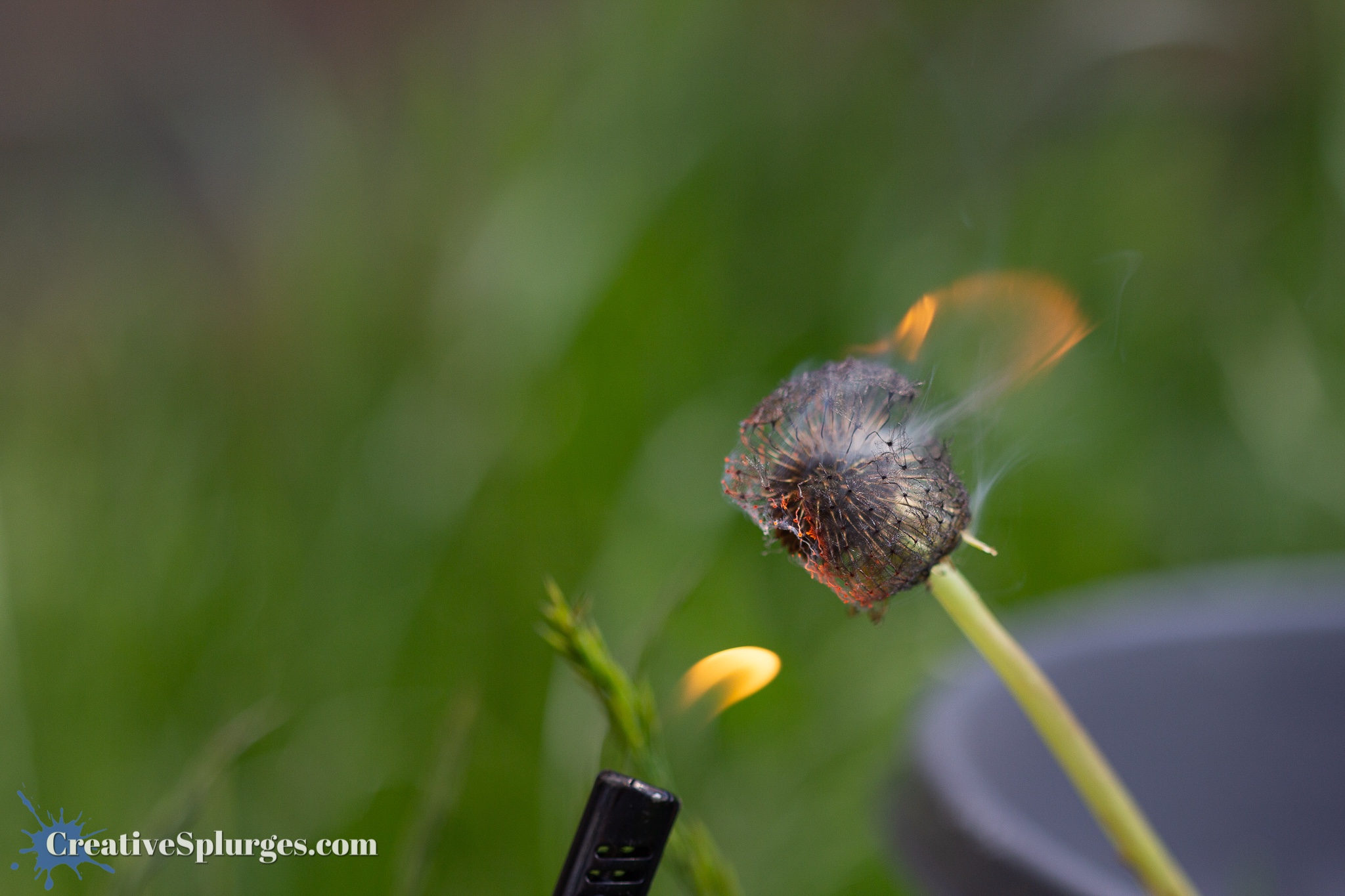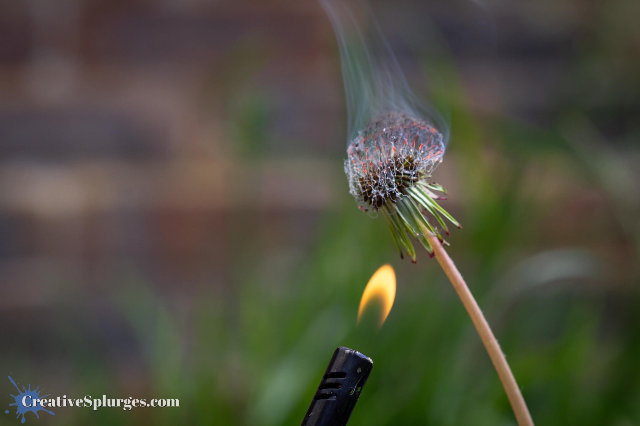 You know the drill by now: set fire to the dandelion, fire off shots on the camera as quickly as possible.