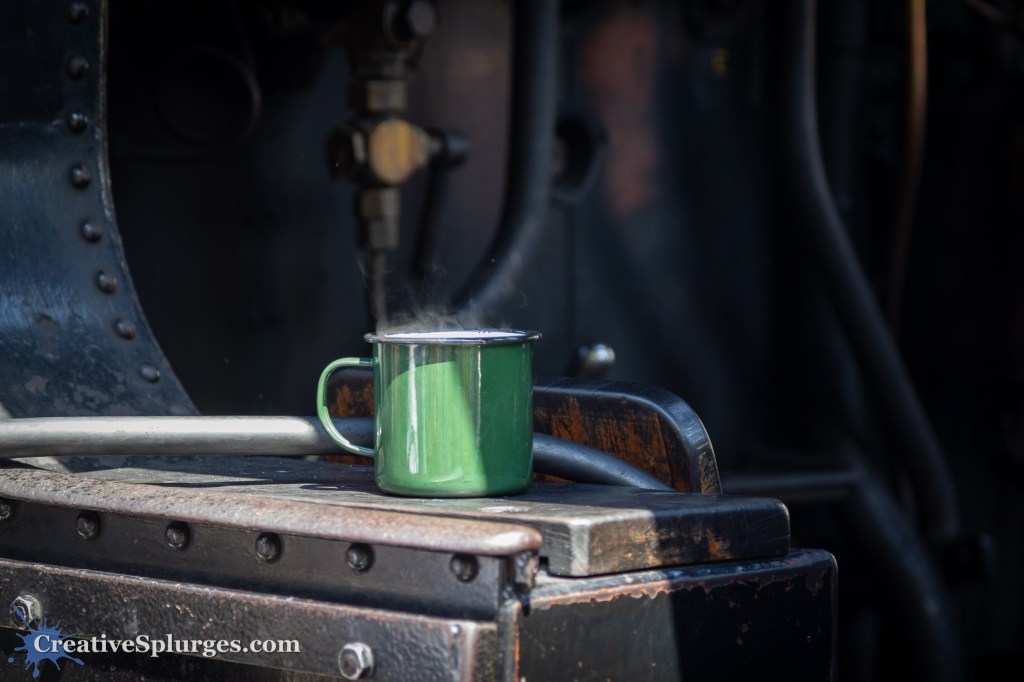 We rode the railway to the other end of the line, and then alighted to get some more photographs of the railway at work. Unfortunately, whilst the volunteers generally kept themselves dressed in a way appropriate for the age of steam, they still afforded themselves some modern luxuries. So whilst at first glance this image might look largely accurate – he’s even drinking his tea out of a lovely metal 60s mug – you’ll probably soon notice the massive anachronistic digital watch.