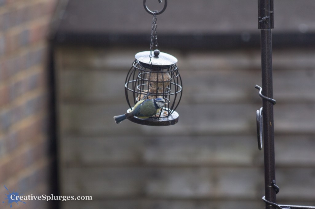This fat ball feeder was positioned such that the bigger birds had nowhere to stand in order to get at them. It meant there was actually some for the smaller ones.