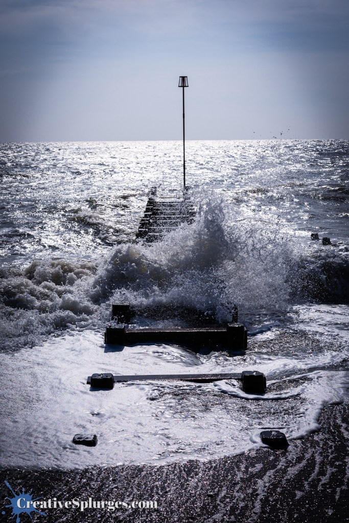 The wind didn’t really let up, but it did mean the sea remained a bit lively, which was great for when it crashed into the groynes.