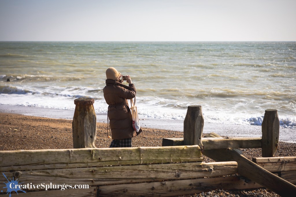 As I strolled along the beach, I saw a woman taking photographs with her phone. I fired off a few sneaky shots of her silhouetted against the sea.