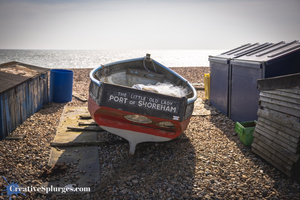 When I had the idea of visiting Worthing to take photos, what I had in my mind was boats parked along the beach. Eventually, when I wandered a bit further away from the town, the beach started to deliver.