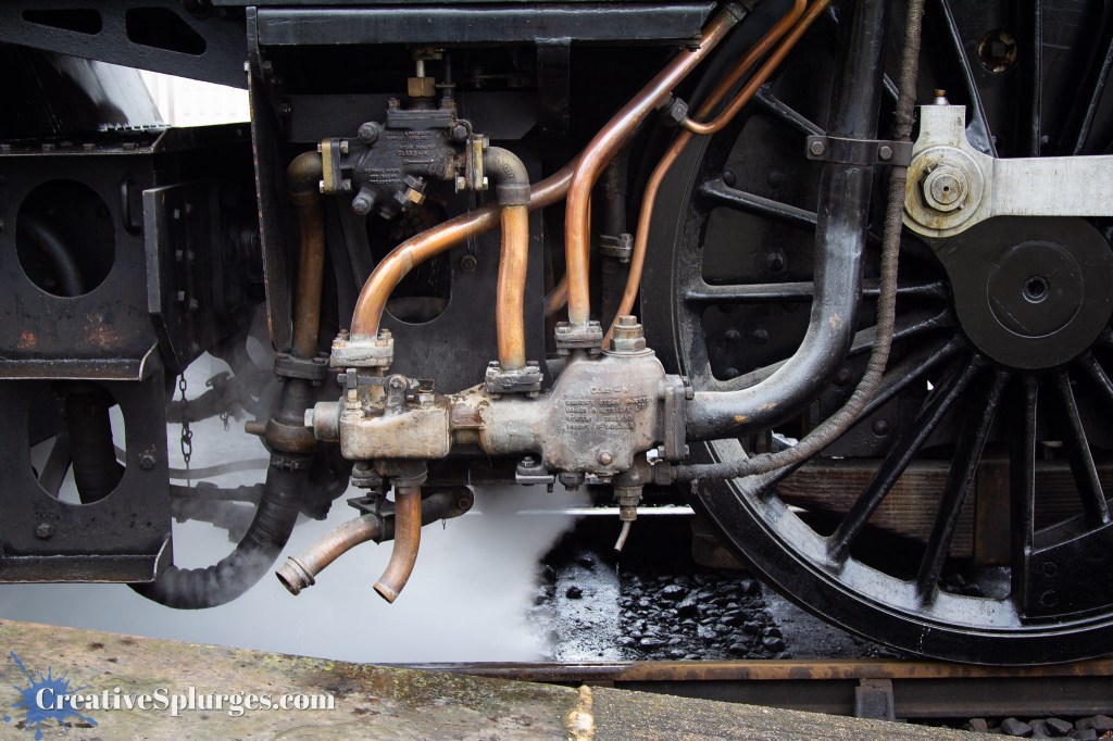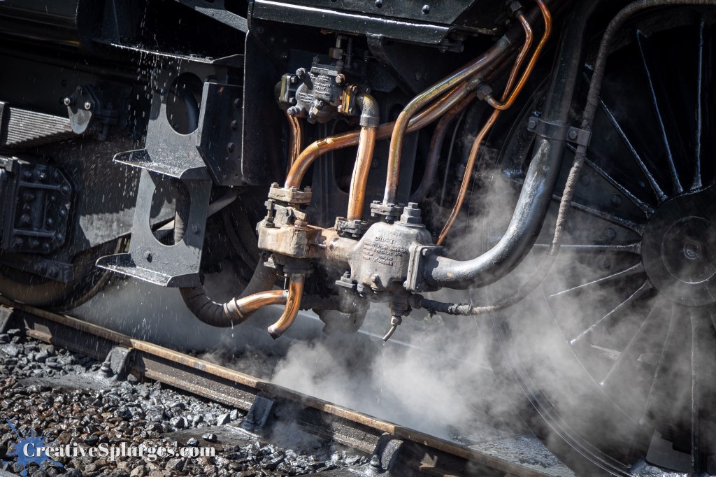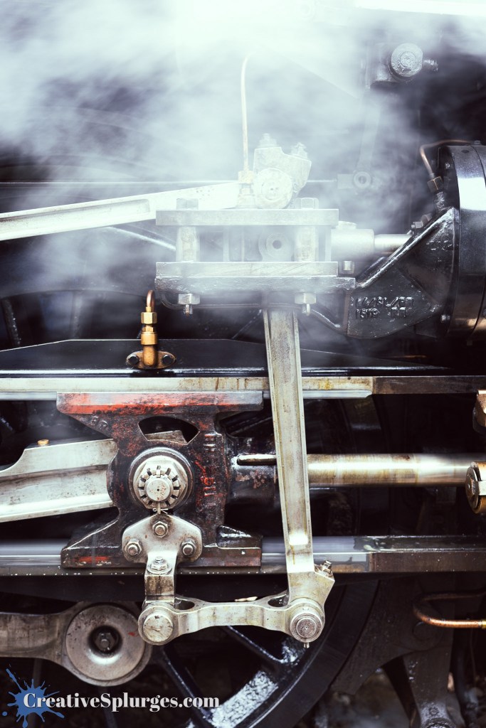 When I was able to take photos, I once again honed in on the steampunkiness of the train’s mechanisms. I’m not sure if I prefer this one with or without smoke – the smoke certainly adds to the atmosphere.