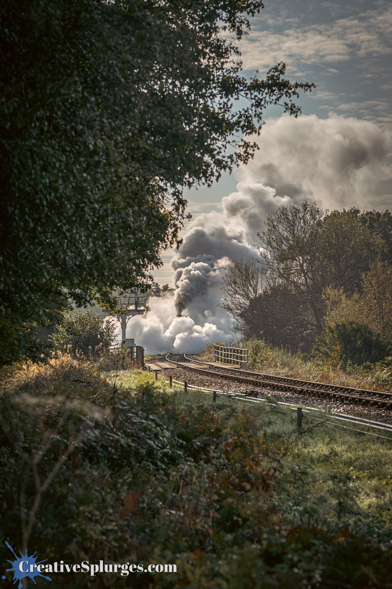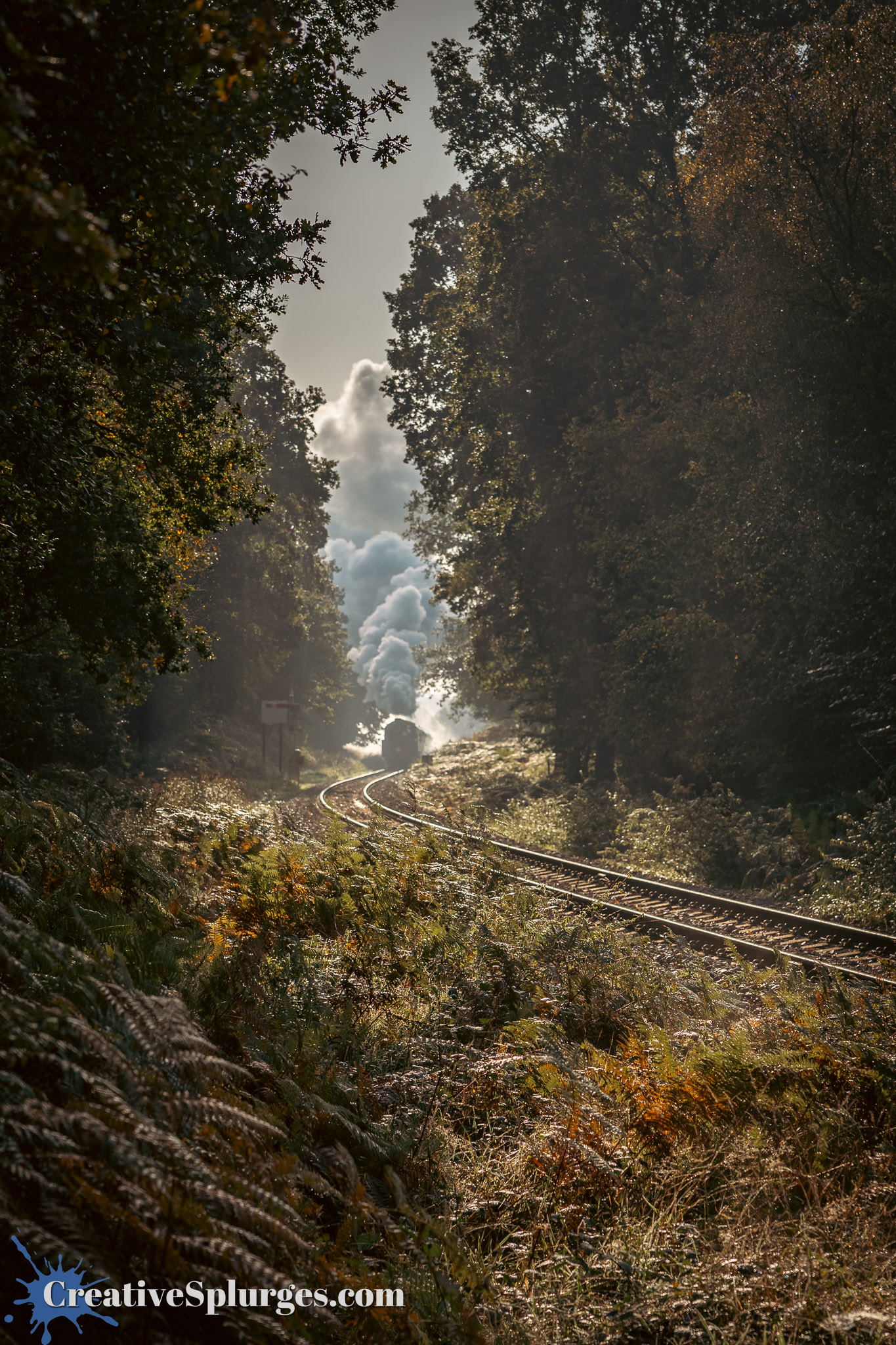 I decided to trek a little further up the track and try another spot for the next train. I found a lovely wooded corner a hundred metres or so further on, which was catching the light brilliantly, especially as there will still some smoke left from Sir Archie.