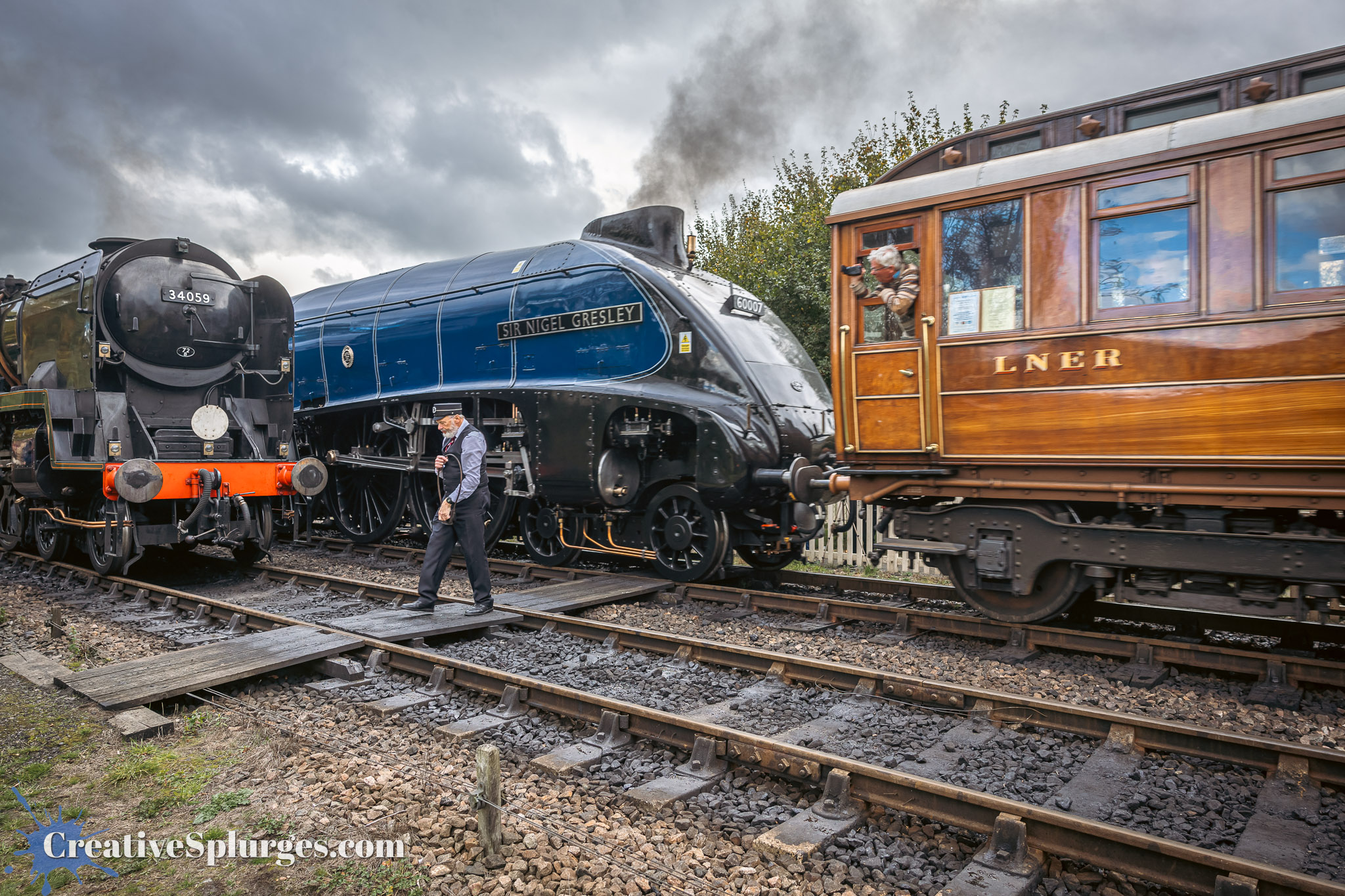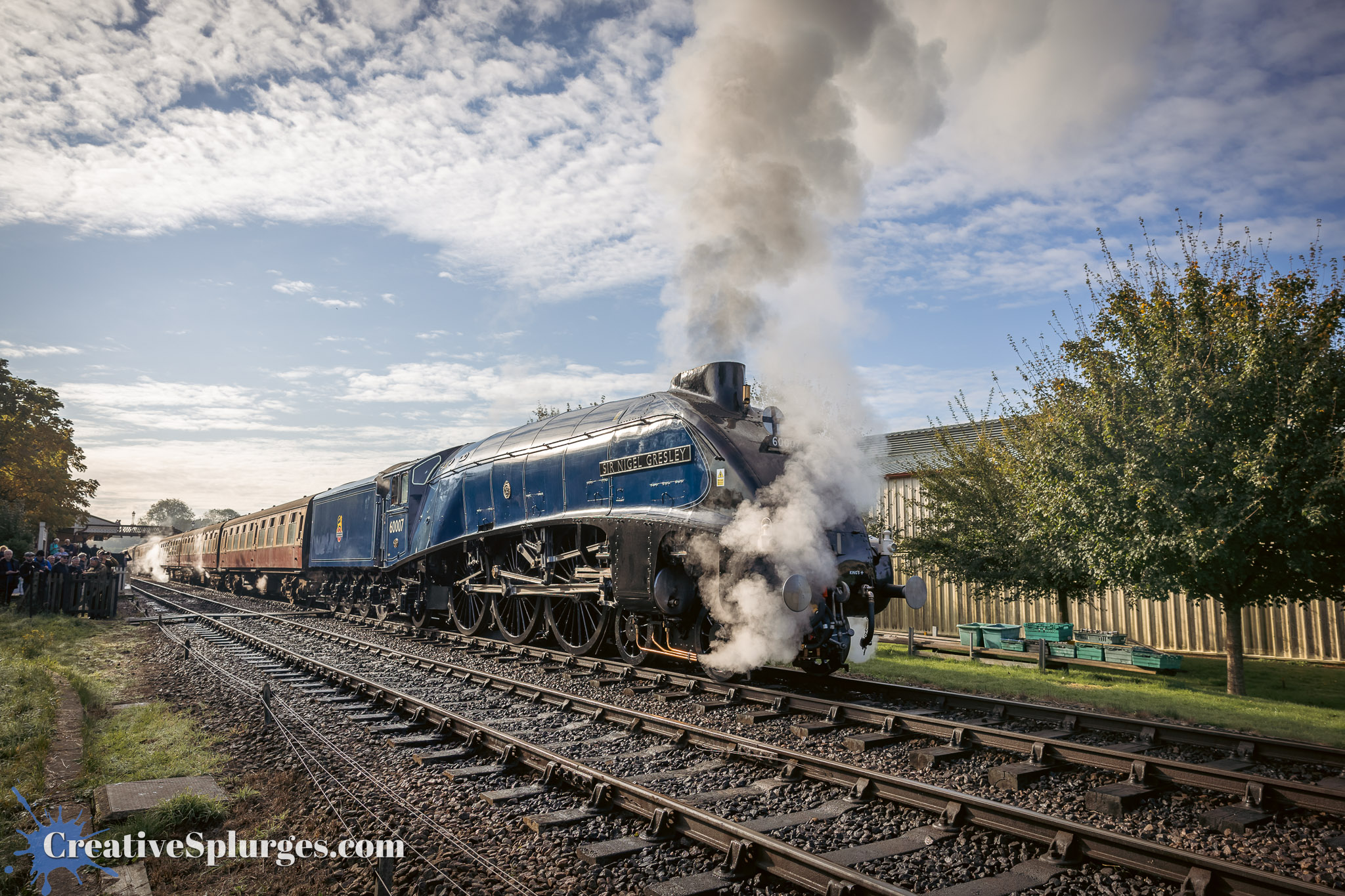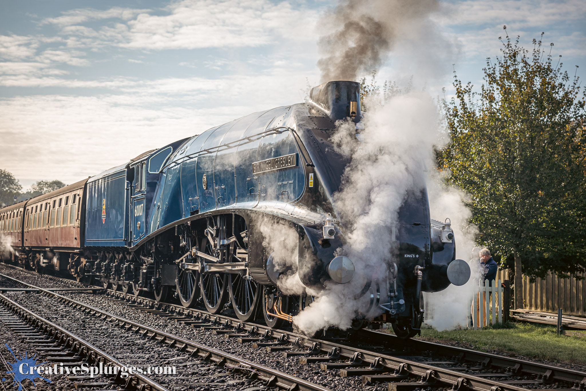 With Sir Archie gone by, I decided to hold position for the next train, which would be headed by Sir Nigel Gresley, and keep shooting with my telephoto.