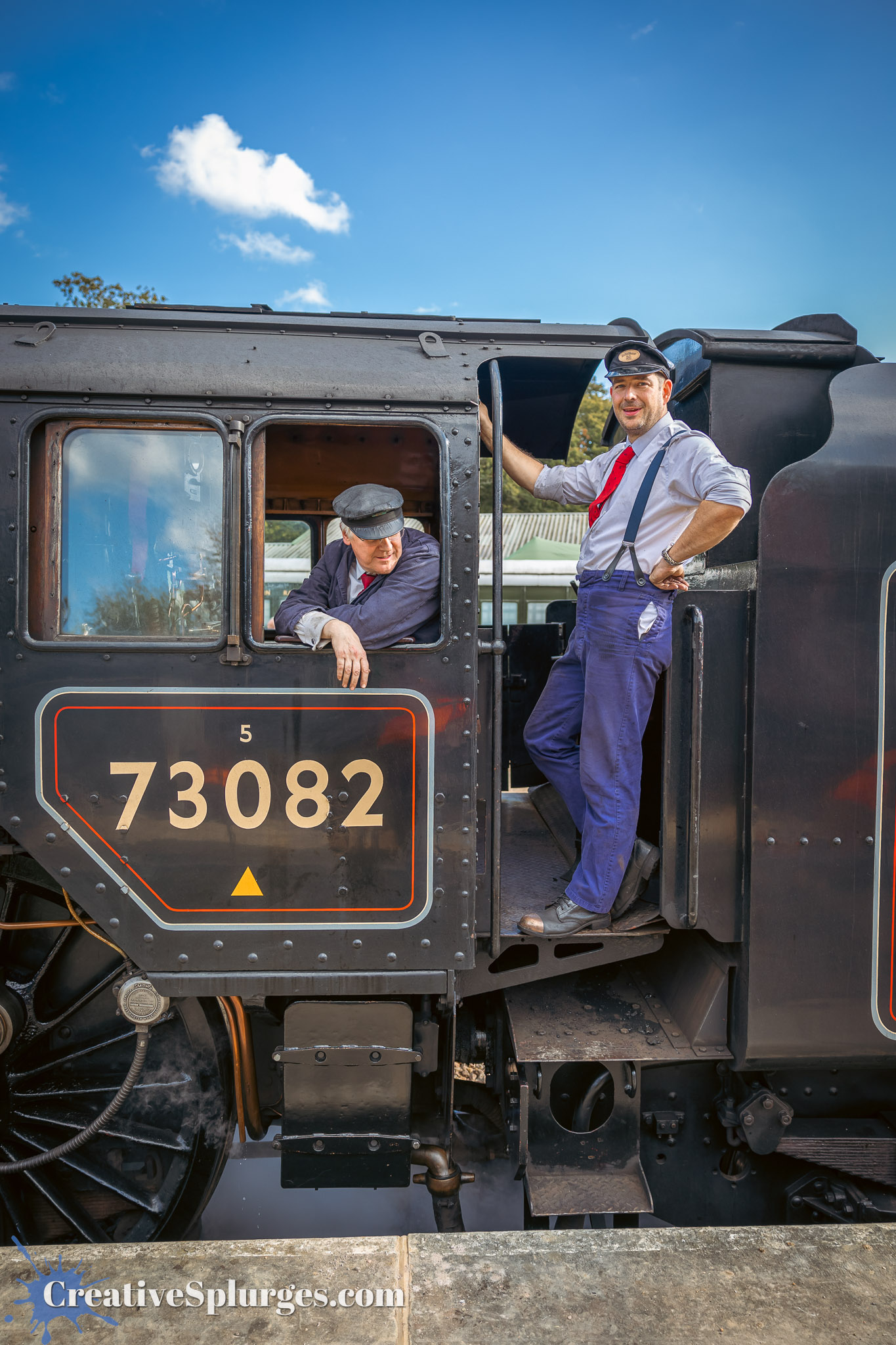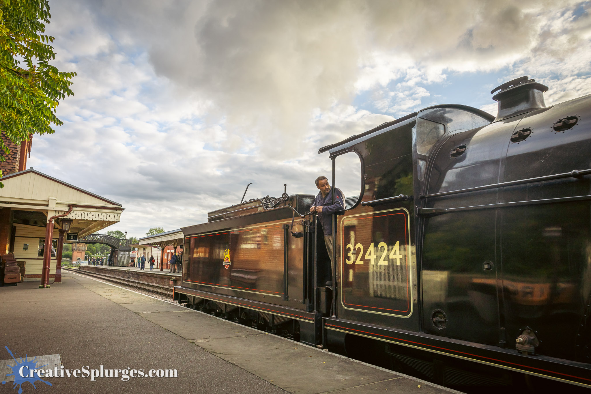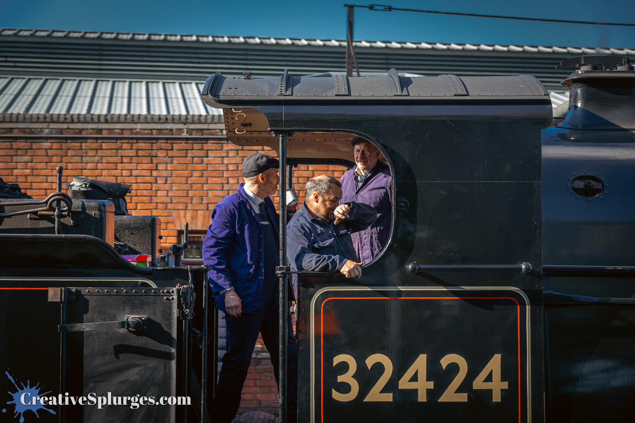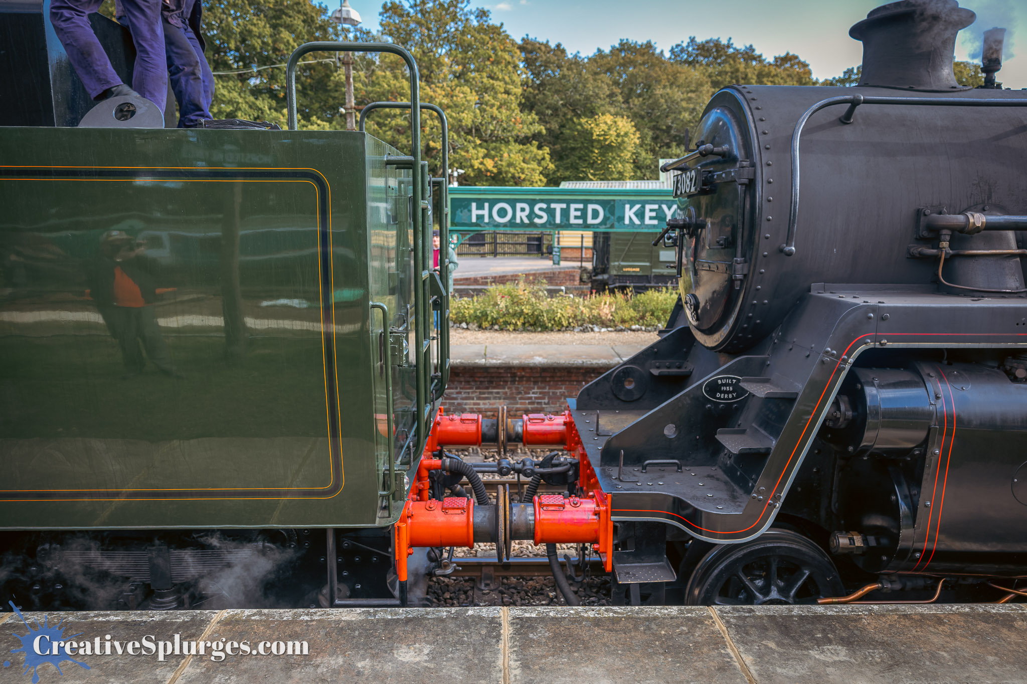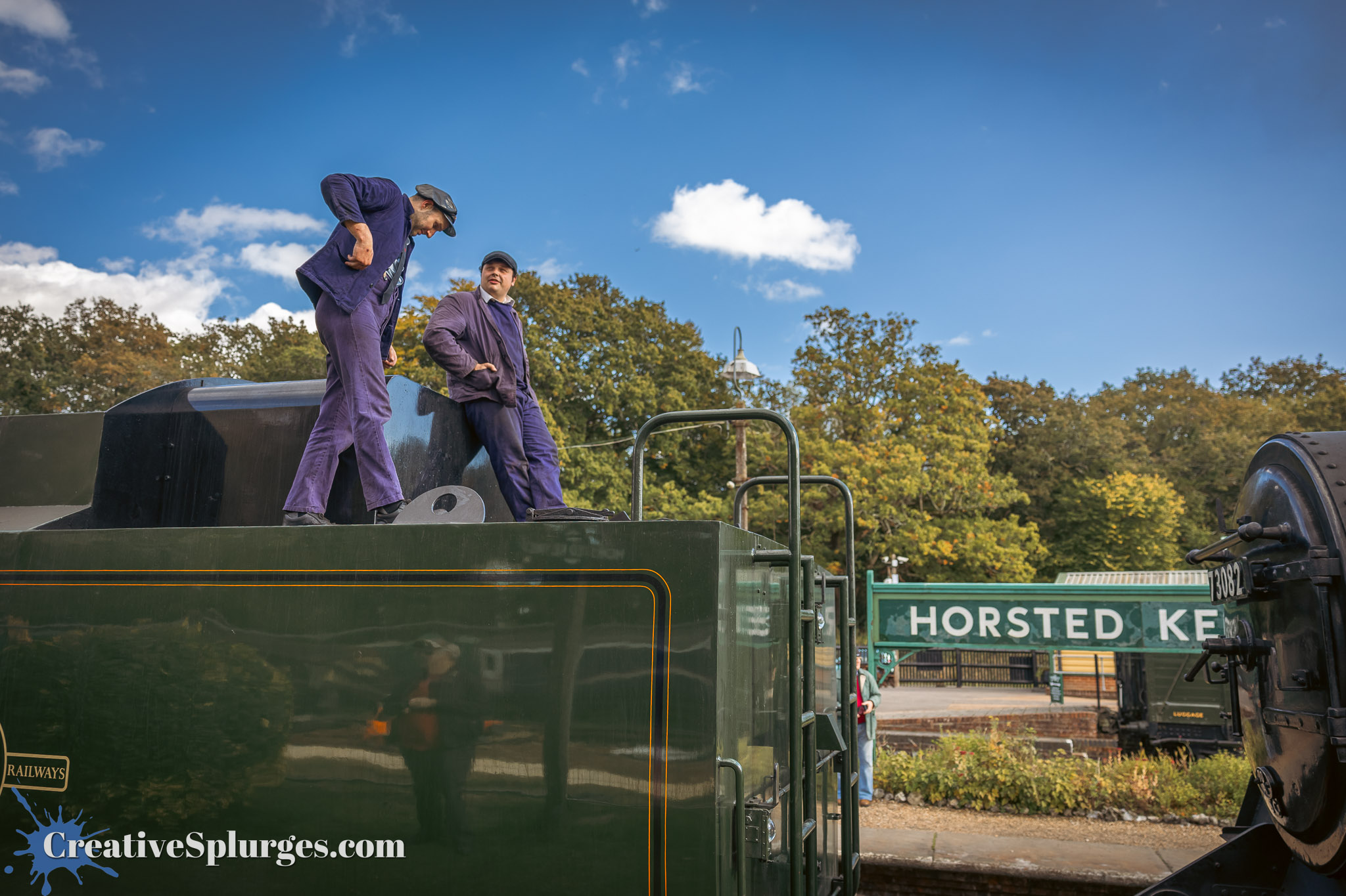 I walked back up to Horsted Keynes in order to catch a train back to Sheffield Park. Shortly thereafter Camelot and Sir Archibald Sinclair brought the next service back south. There was a little wait before they set off, so I could take some time to get some photos, starting with one of Camelot’s crew.