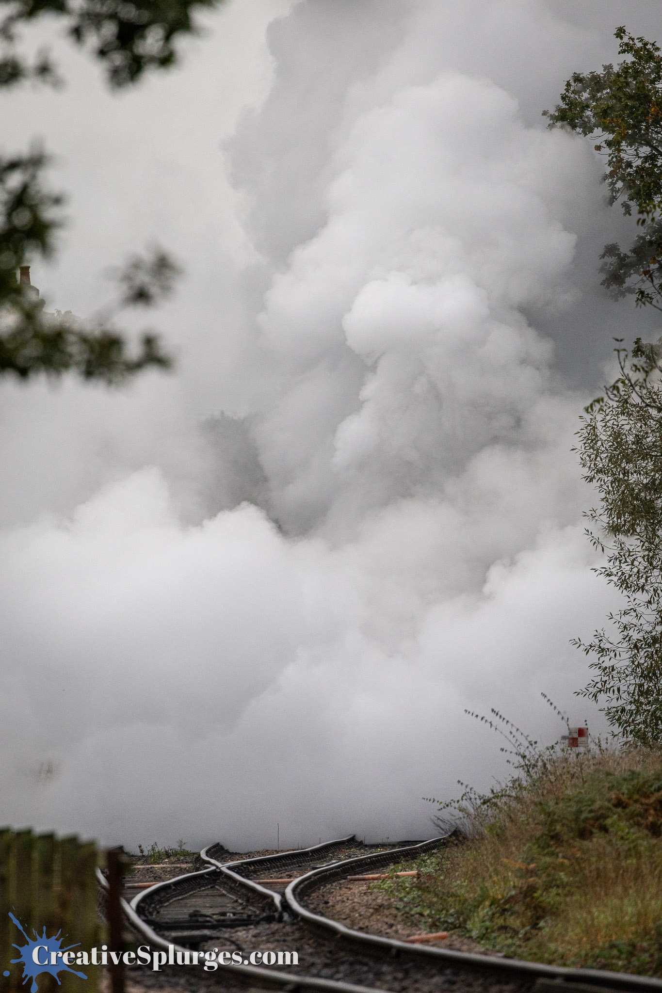 It soon fetched its coaches from the carriage shed, and I grabbed a shot of its cool smoke formations as it passed under the footbridge.