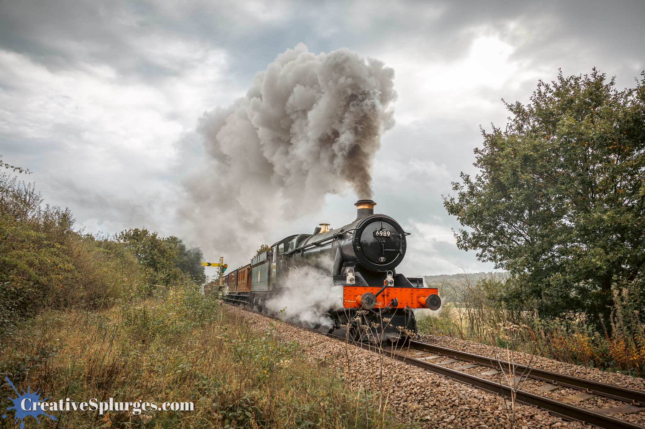 The first train to come by whilst I was here was 6989 Wightwick Hall.