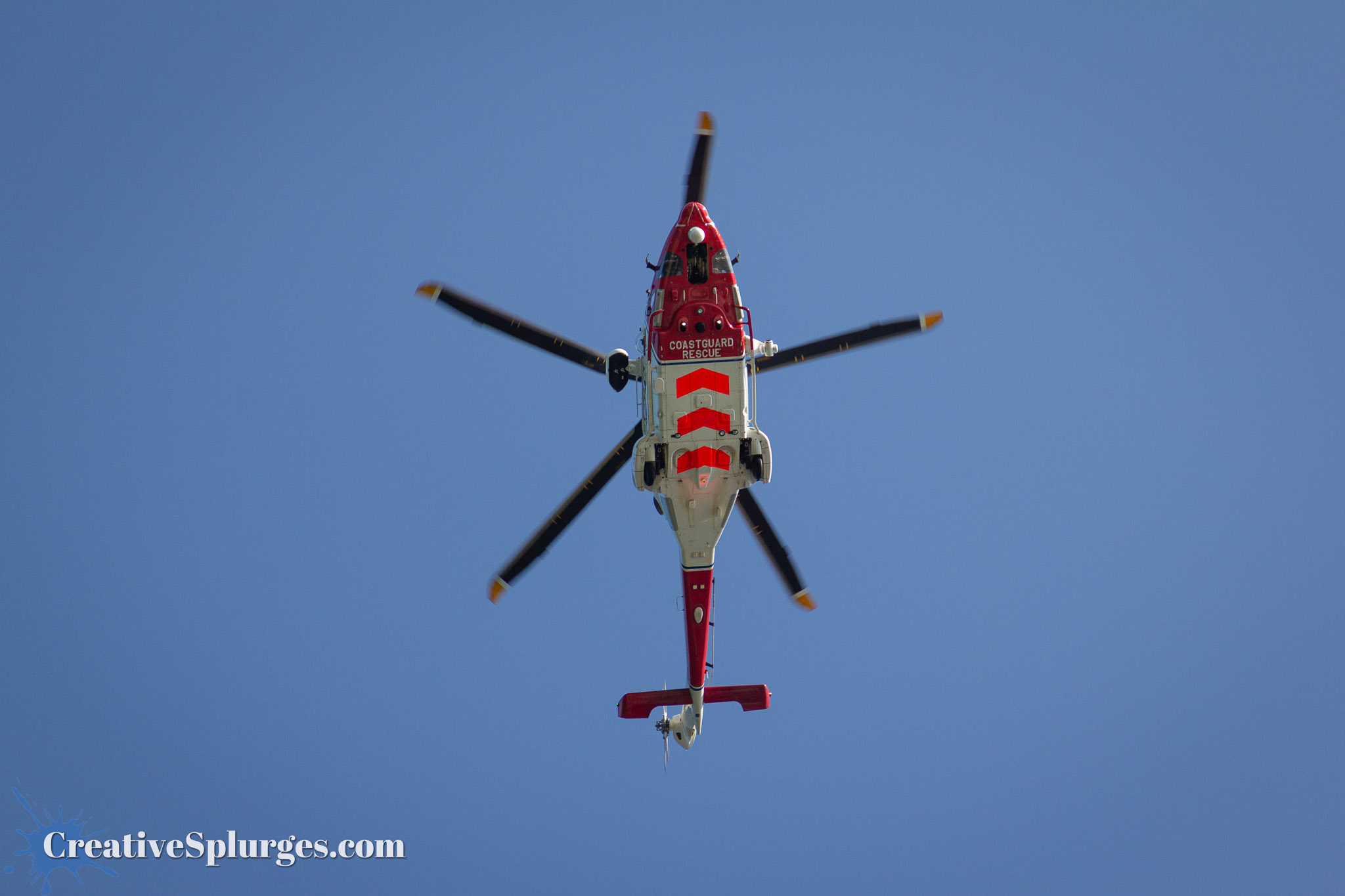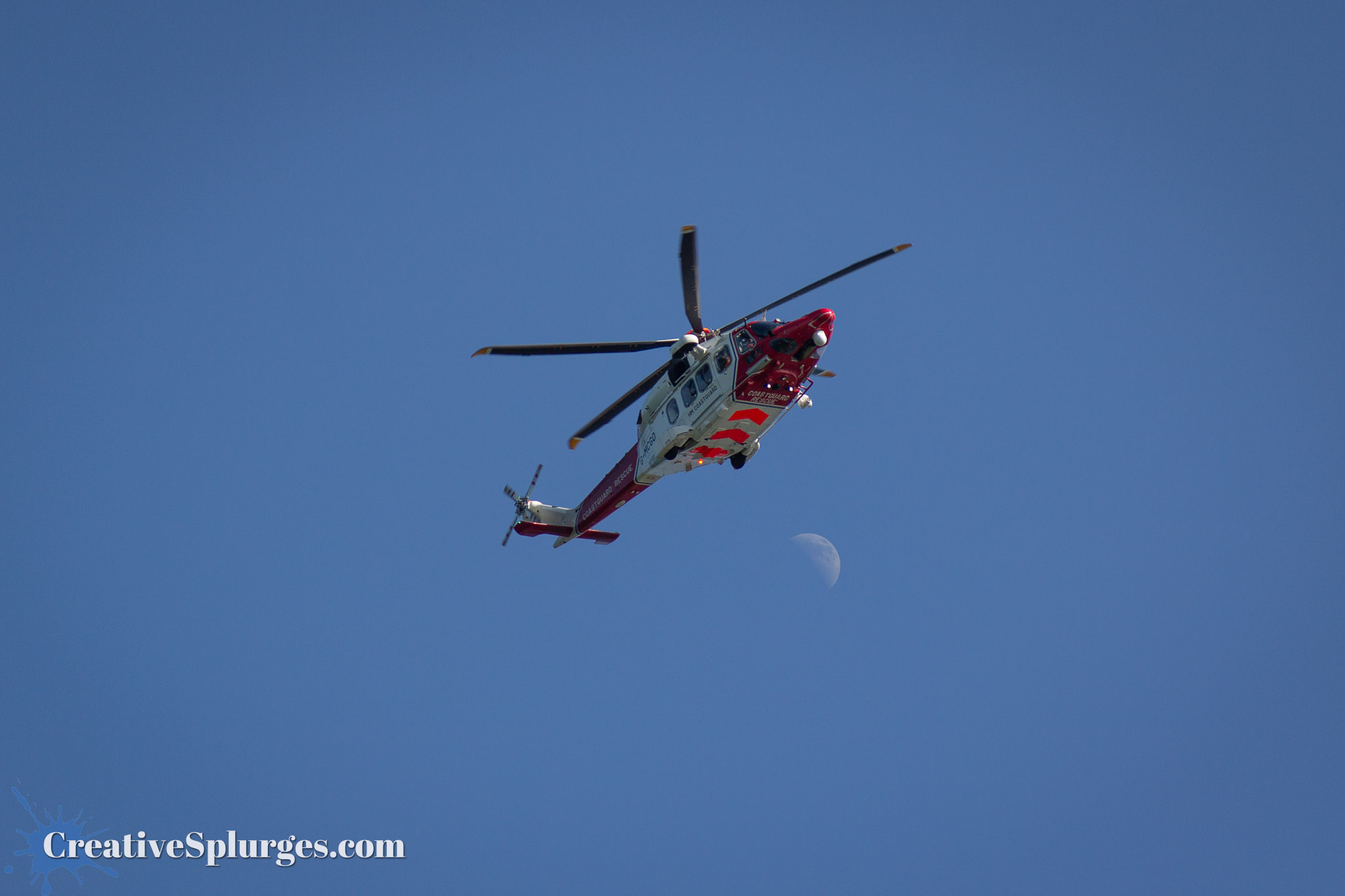 On another day, we were sitting on the beach when the Coastguard helicopter came by doing some manoeuvres. One thing I learned when I was a kid was that you never know when something like that might happen in Dorset. On this occasion the helicopter passed right by the Moon.