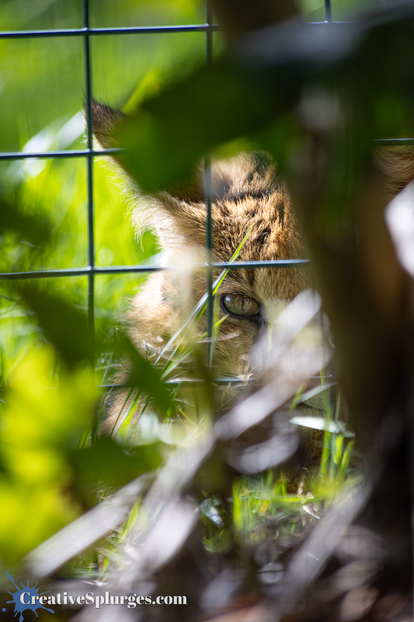 Elsewhere, there was another kind of wild cat, which frankly I’m not sure of the name of. What’s a good cat name? Tiddles. There we go. He was hiding in the bushes near a fence, but luckily I spotted him.