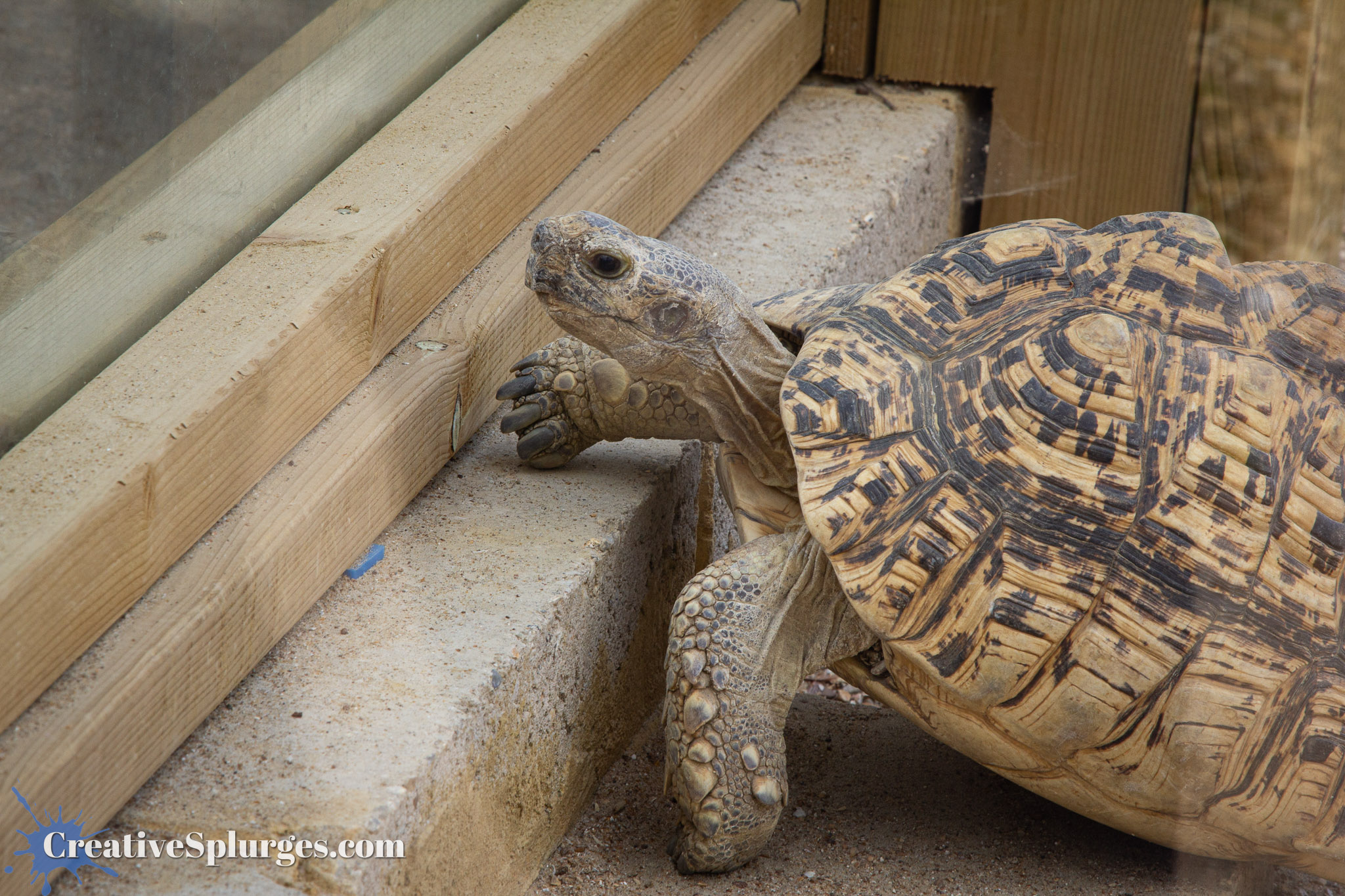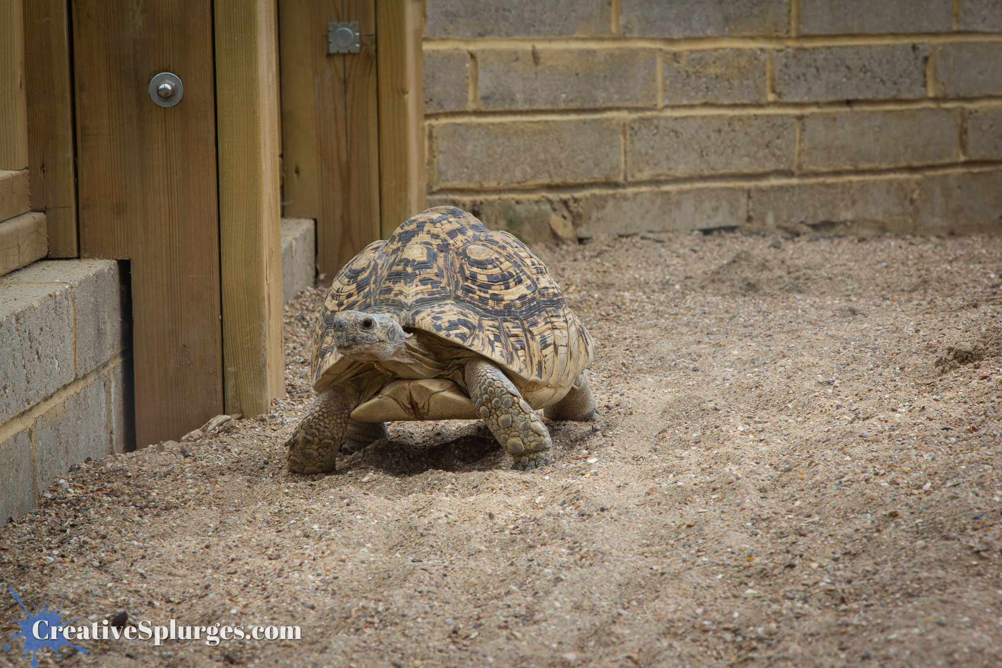 The errant Manual mode continued during an encounter with a tortoise that also called this pen home.